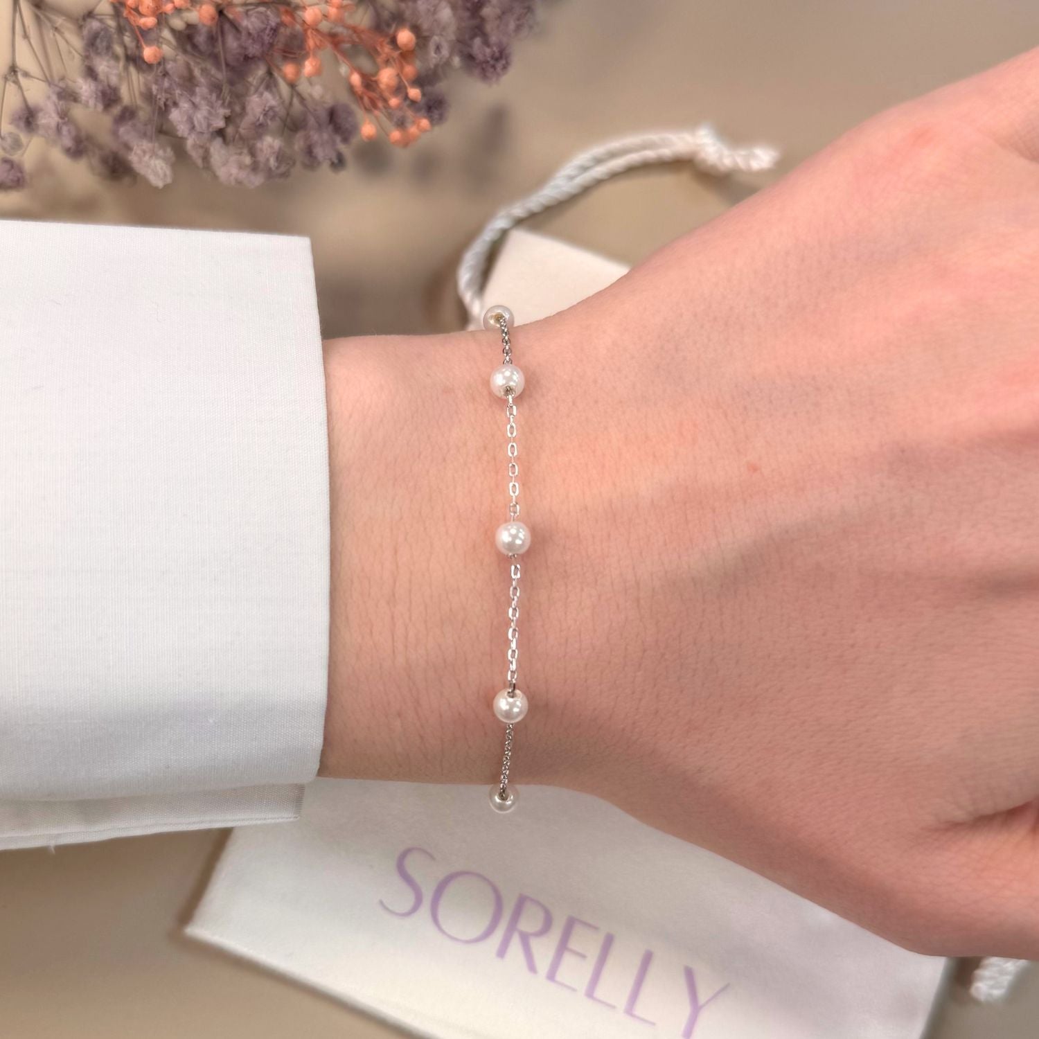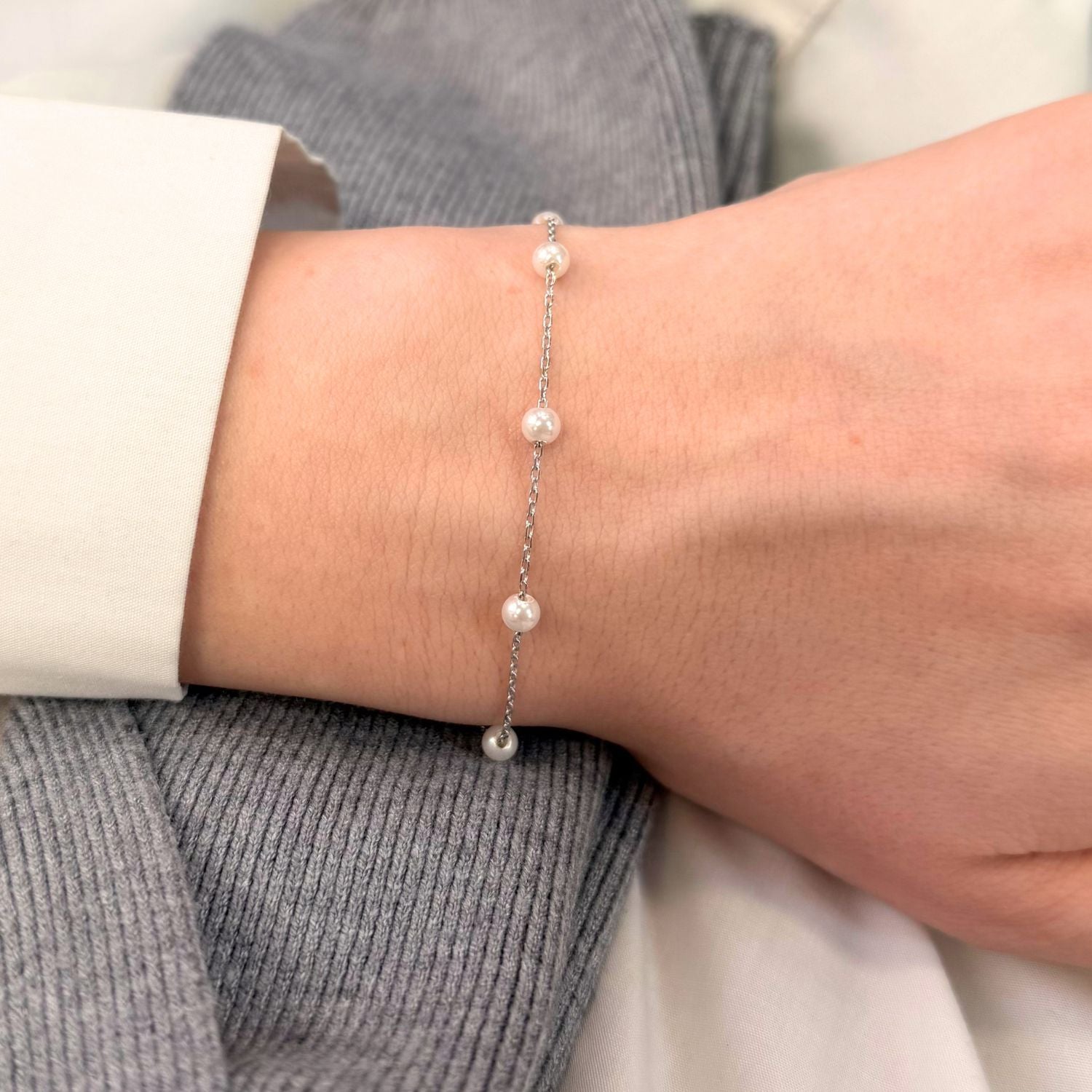 Bratara din argint, decorata cu perle elegante create artificial, perfecta pentru un look rafinat si feminin. Realizata din materiale de calitate premium, ofera stralucire si durabilitate. Ideala pentru ocazii speciale sau cadou deosebit.
