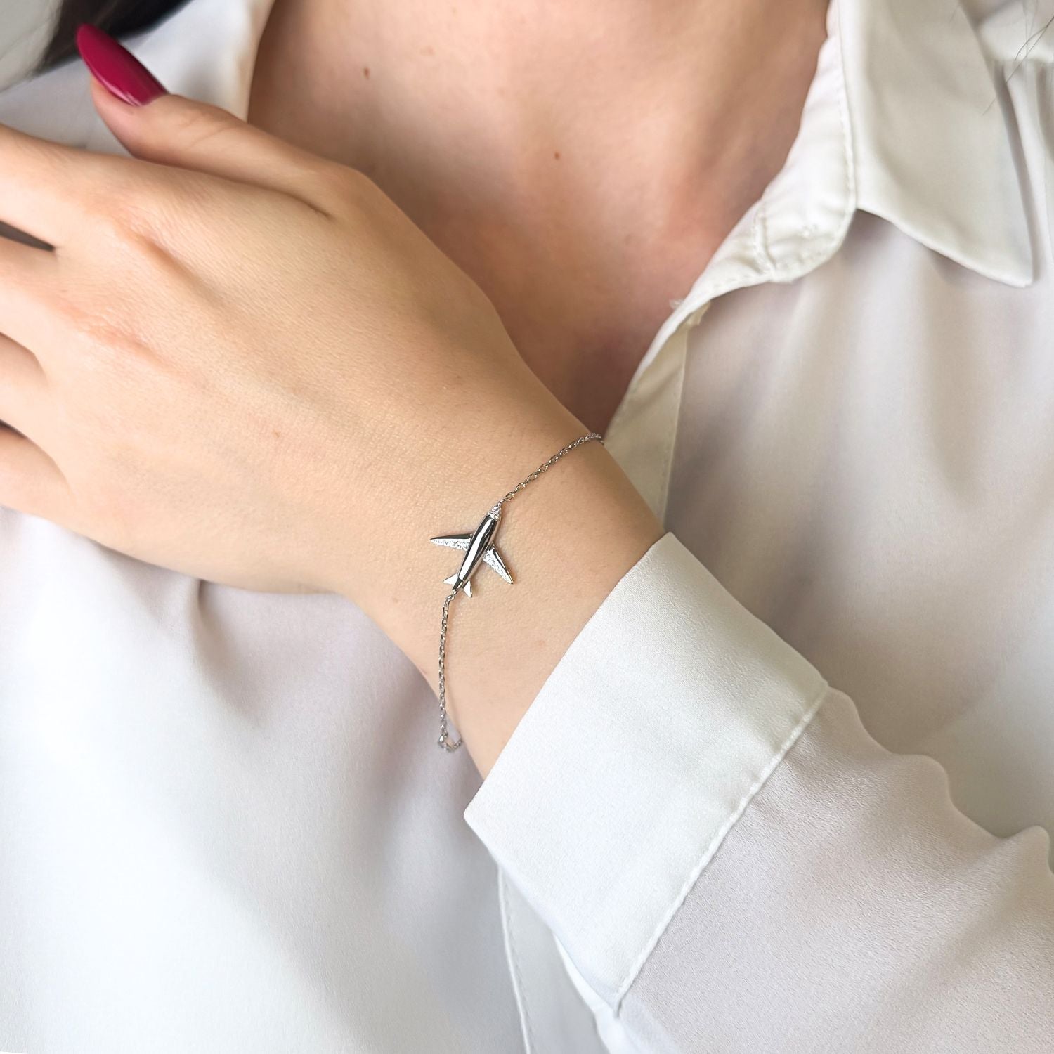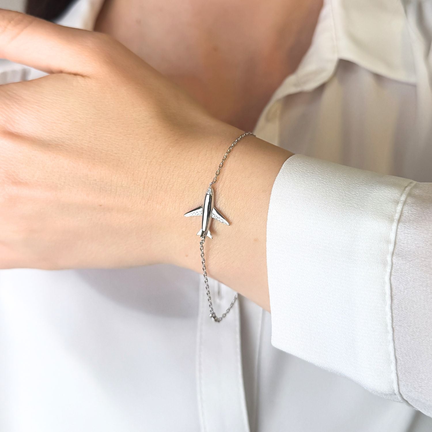 Brățară din argint cu pandantiv avion, modernă și stilată, perfectă pentru a adăuga un accent jucăuș și rafinat ținutelor zilnice sau speciale.