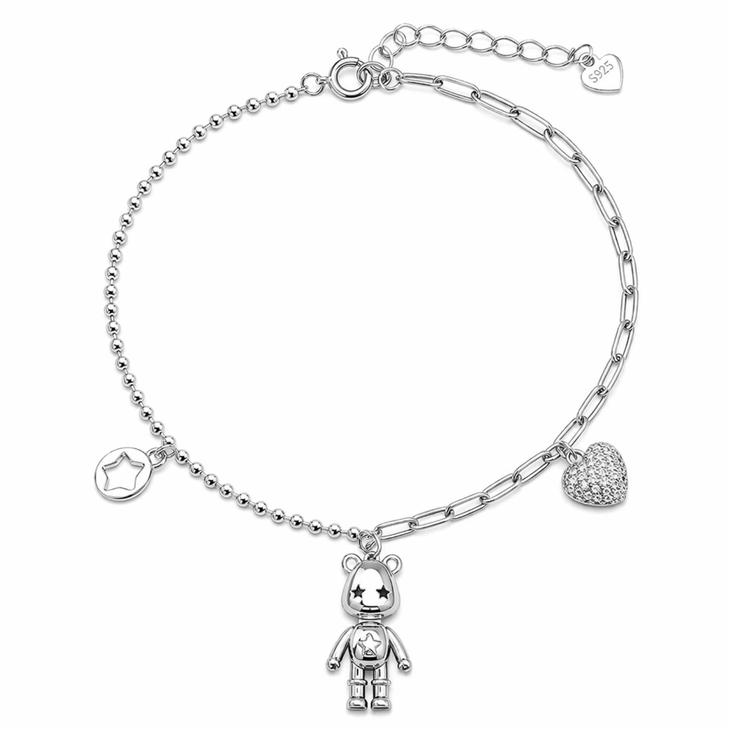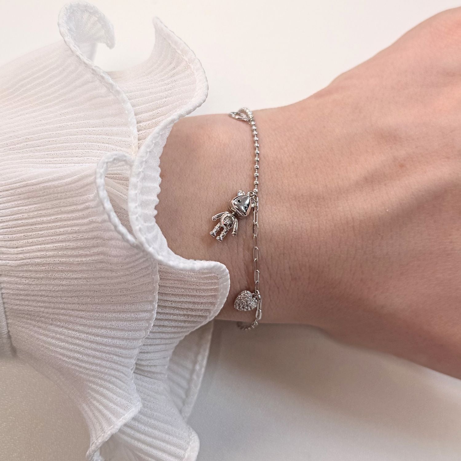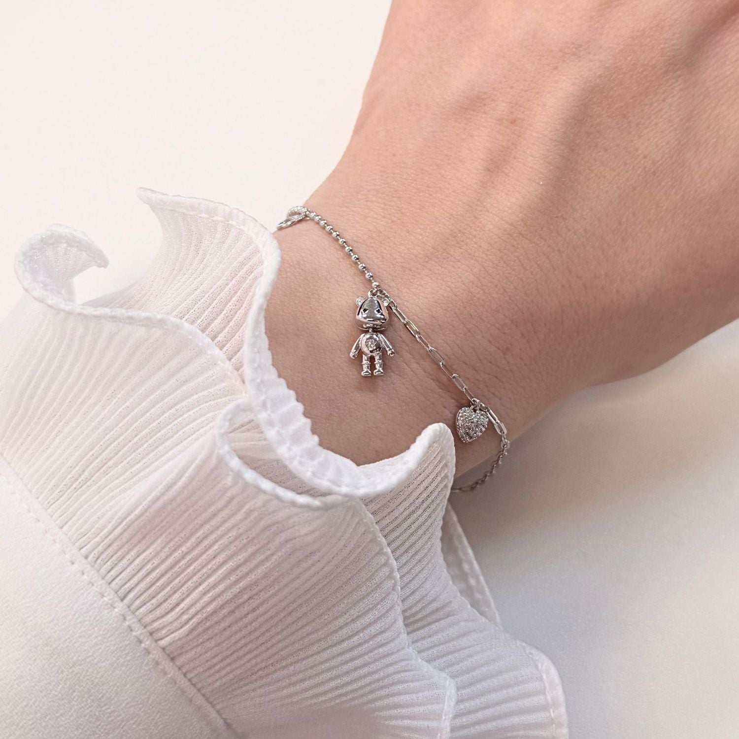 Bratara din argint cu pandantiv ursulet, un accesoriu jucaus si delicat. Perfect pentru a adauga stil si personalitate tinutelor tale zilnice sau festive.