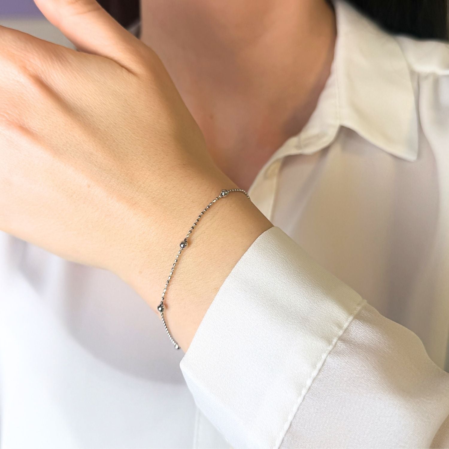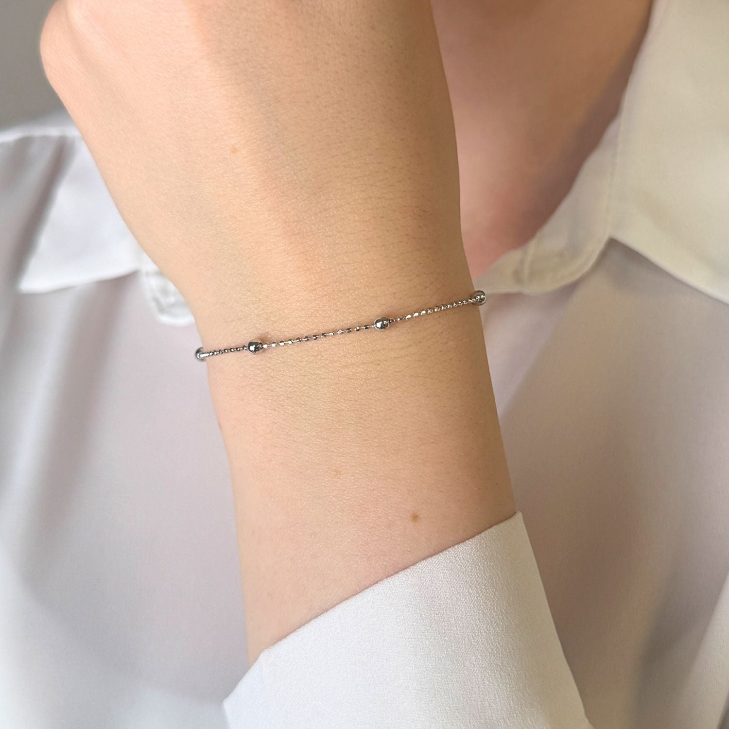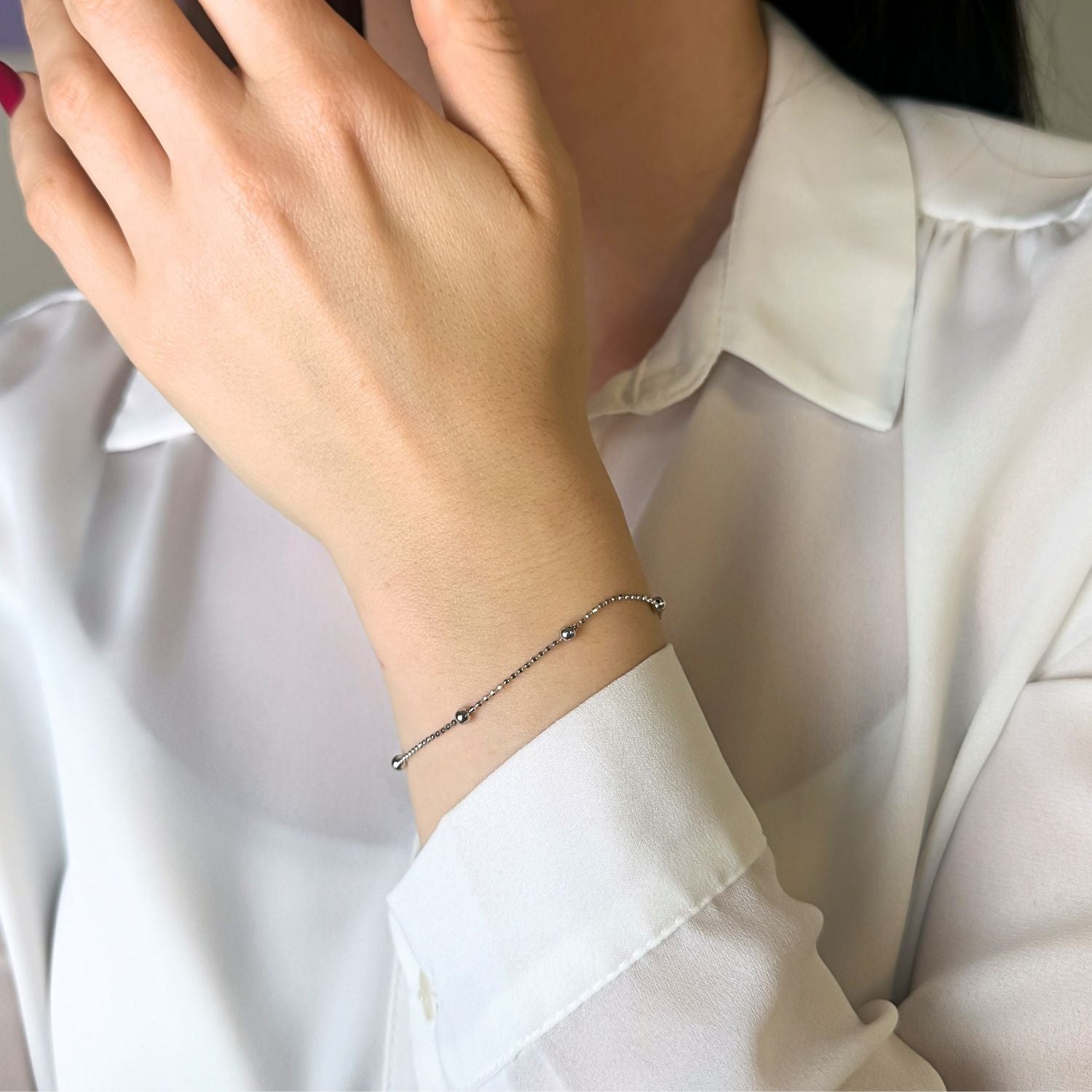 Bratara din argint cu bile, discreta, eleganta si versatila, perfectă pentru un look modern si rafinat, potrivita pentru tinute casual sau office.