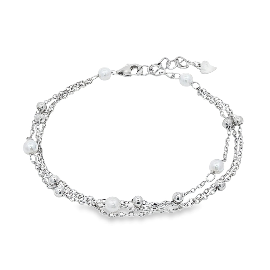 Brățară din argint cu bile și perle, delicată și elegantă, perfectă pentru a adăuga un accent feminin și rafinat ținutelor zilnice sau speciale.