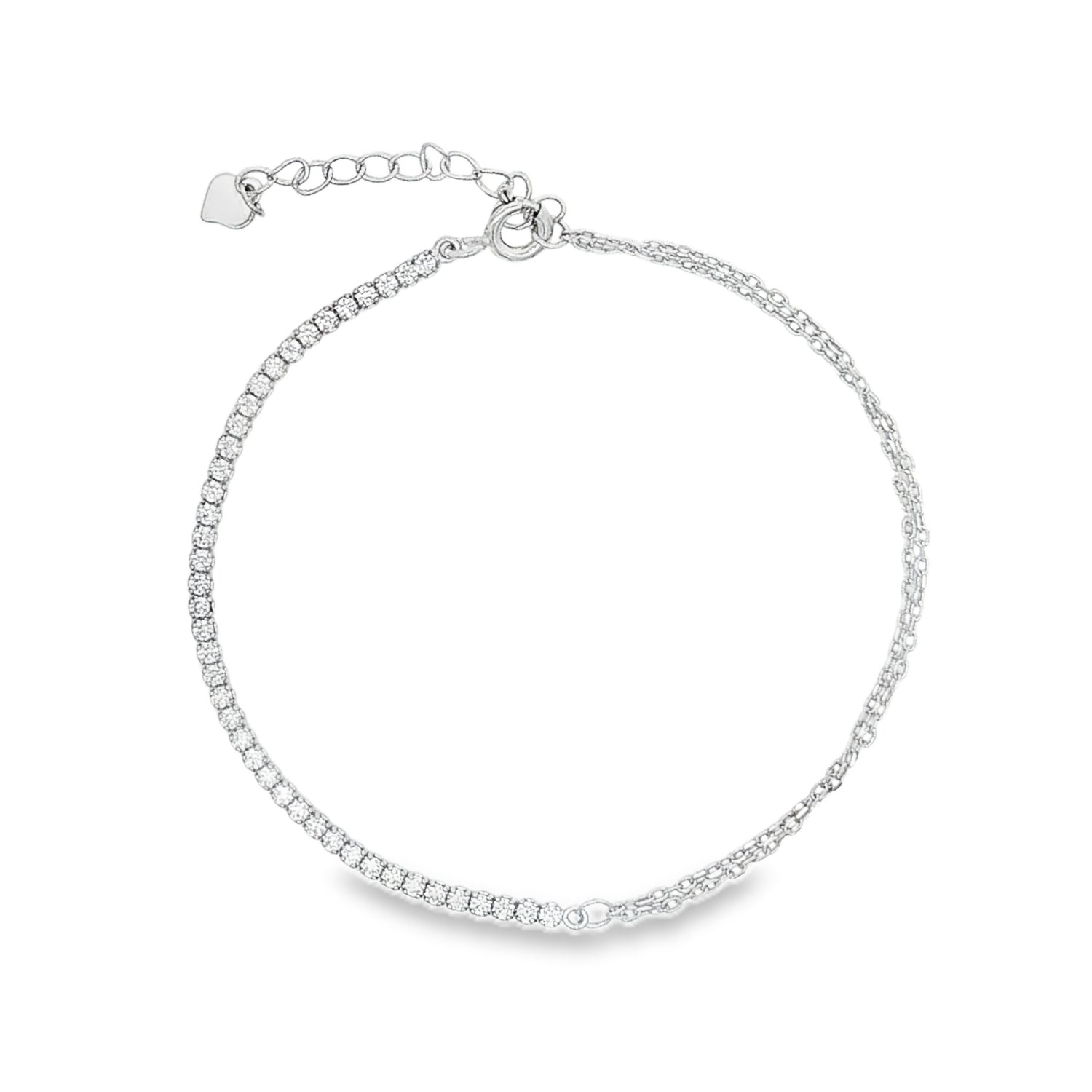 Bratara din argint 925 Asymmetric Tennis, cu design modern ce combina jumatate stil tennis si jumatate lant. Realizata din materiale de calitate premium, ofera stralucire si durabilitate. Ideala pentru un look sofisticat si contemporan.