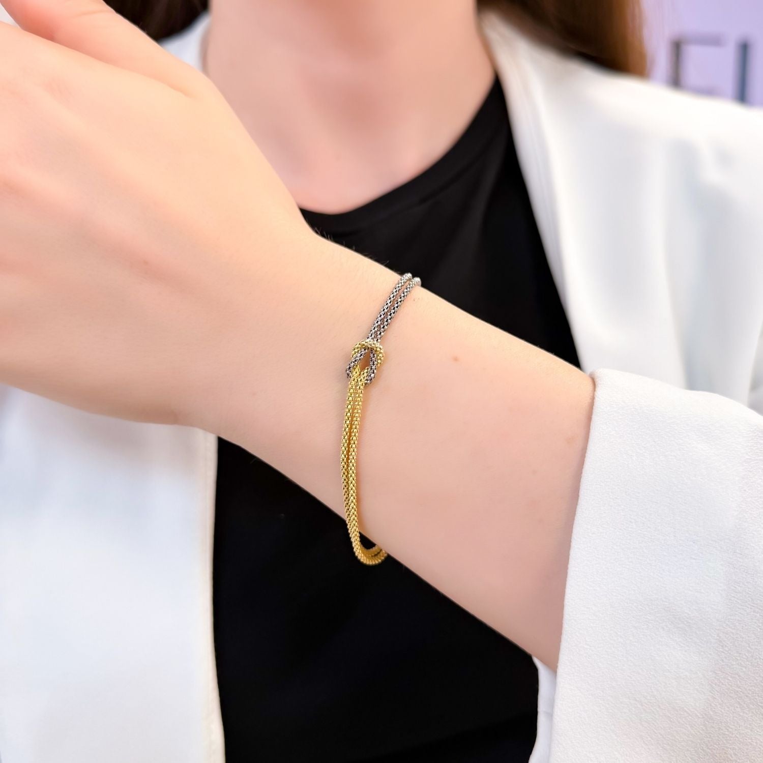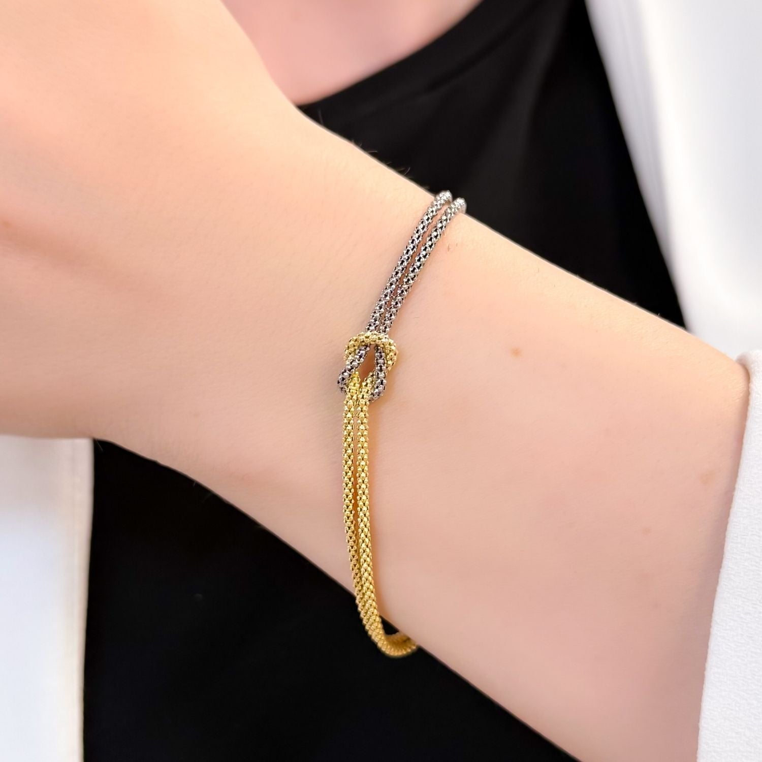 Bratara din argint 925 placat cu aur de 18k cu design nod – simbol al legaturii si conexiunii, un accesoriu elegant si subtil, ideal pentru tinute zilnice sau cadouri.