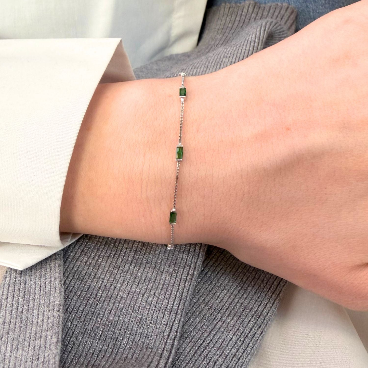 Bratara din argint cu pietre verzi, eleganta si rafinata, perfecta pentru un look sofisticat. Realizata din materiale de calitate premium, ofera stralucire si durabilitate. Ideala pentru ocazii speciale sau cadou deosebit.