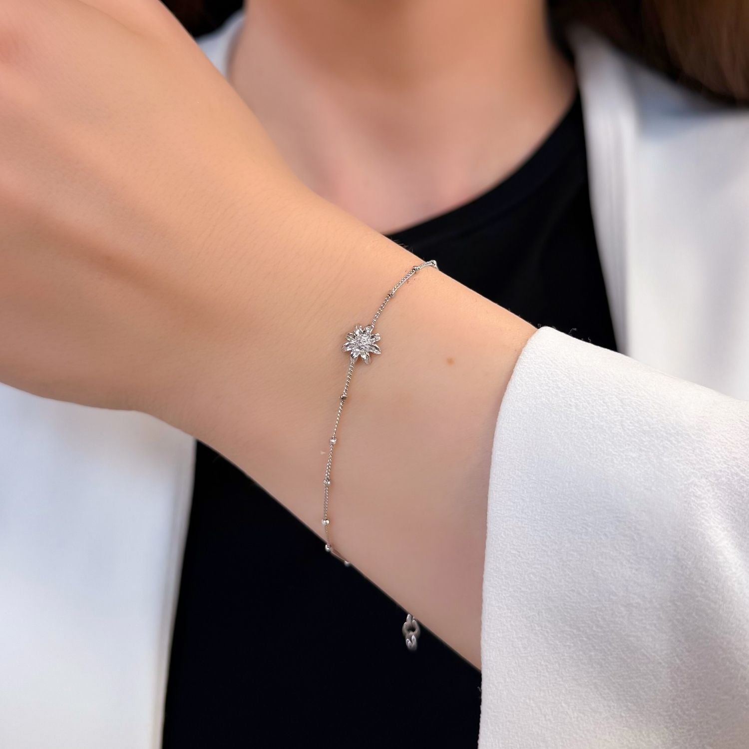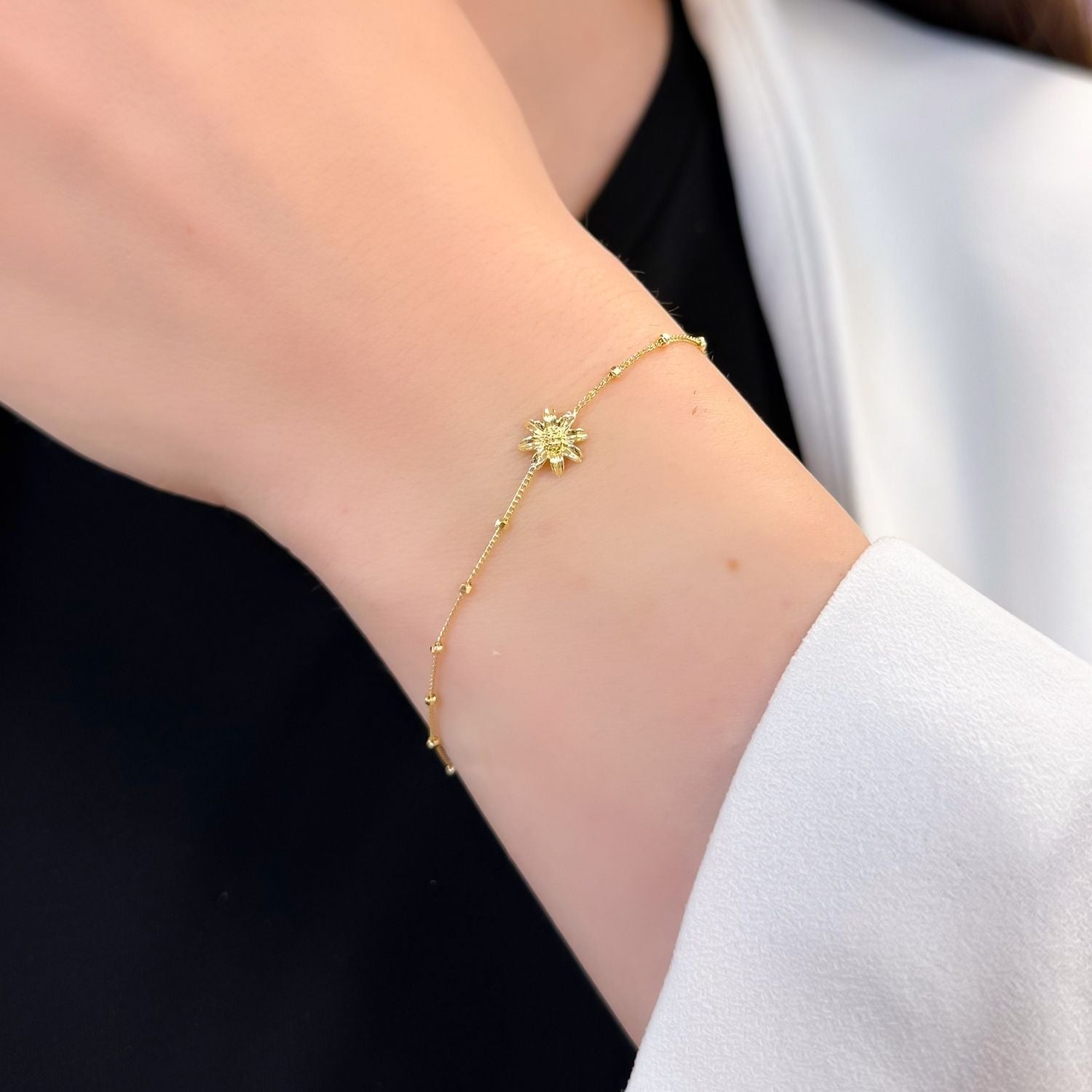 Bratara Floare de Colt din argint 925 este o bijuterie delicata si plina de simbolism. Inspirata de frumusetea florii alpine, simbol al puritatii si al rezistentei, bratara aduce un aer natural si rafinat oricarei tinute. Realizata din argint de calitate, este rezistenta si eleganta, ideala pentru purtare zilnica sau pentru ocazii speciale. Un accesoriu feminin si atemporal, perfect si ca dar cu semnificatie pentru persoanele dragi.
