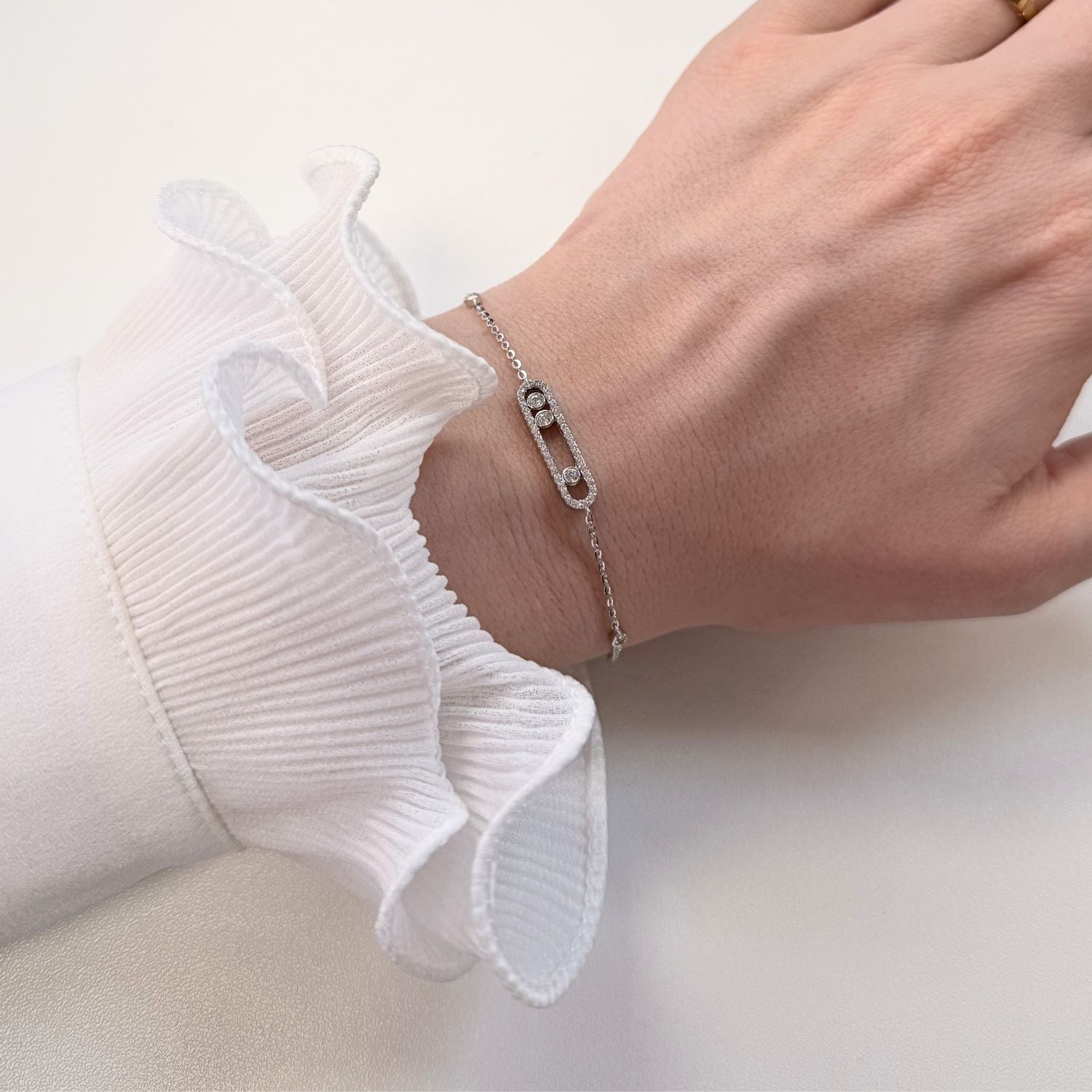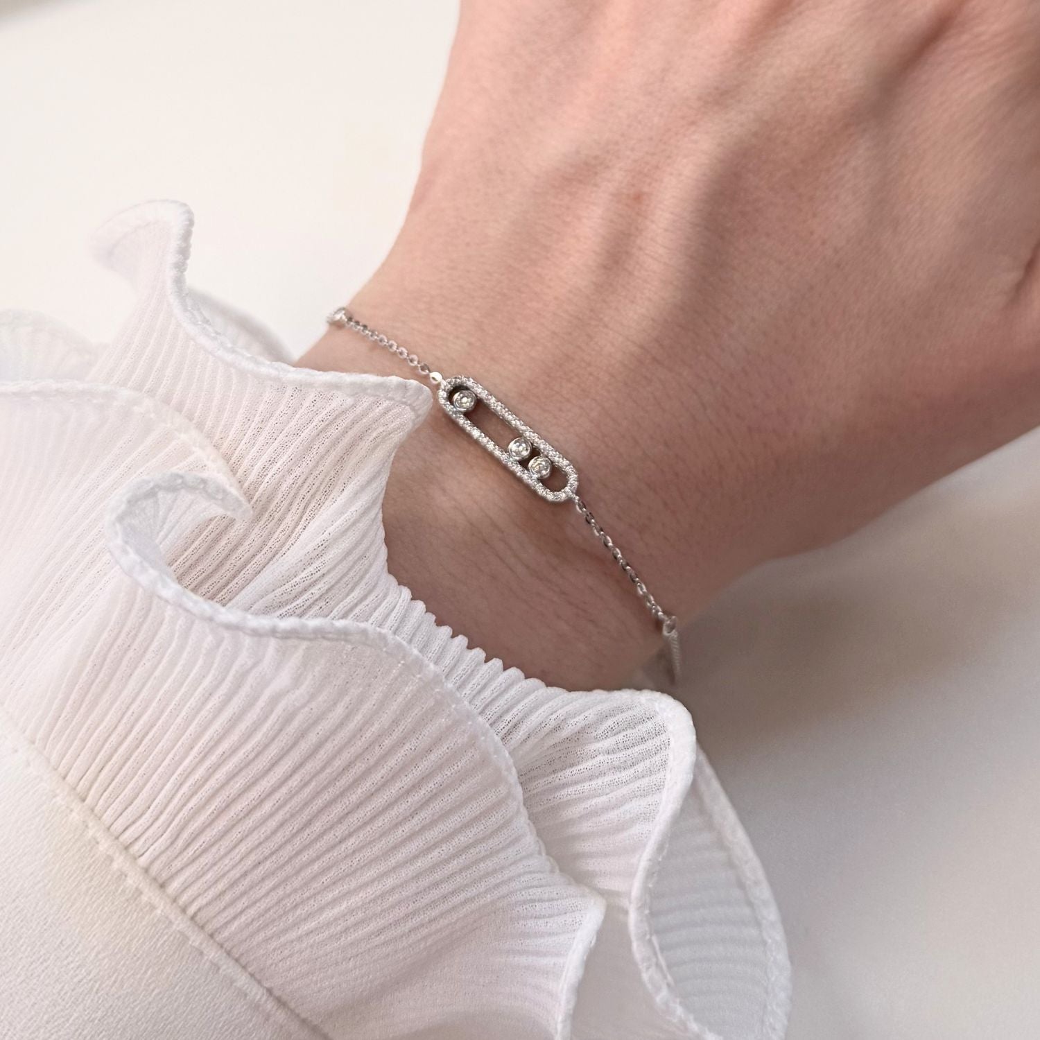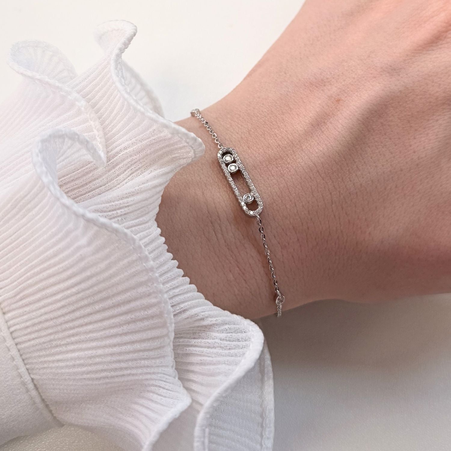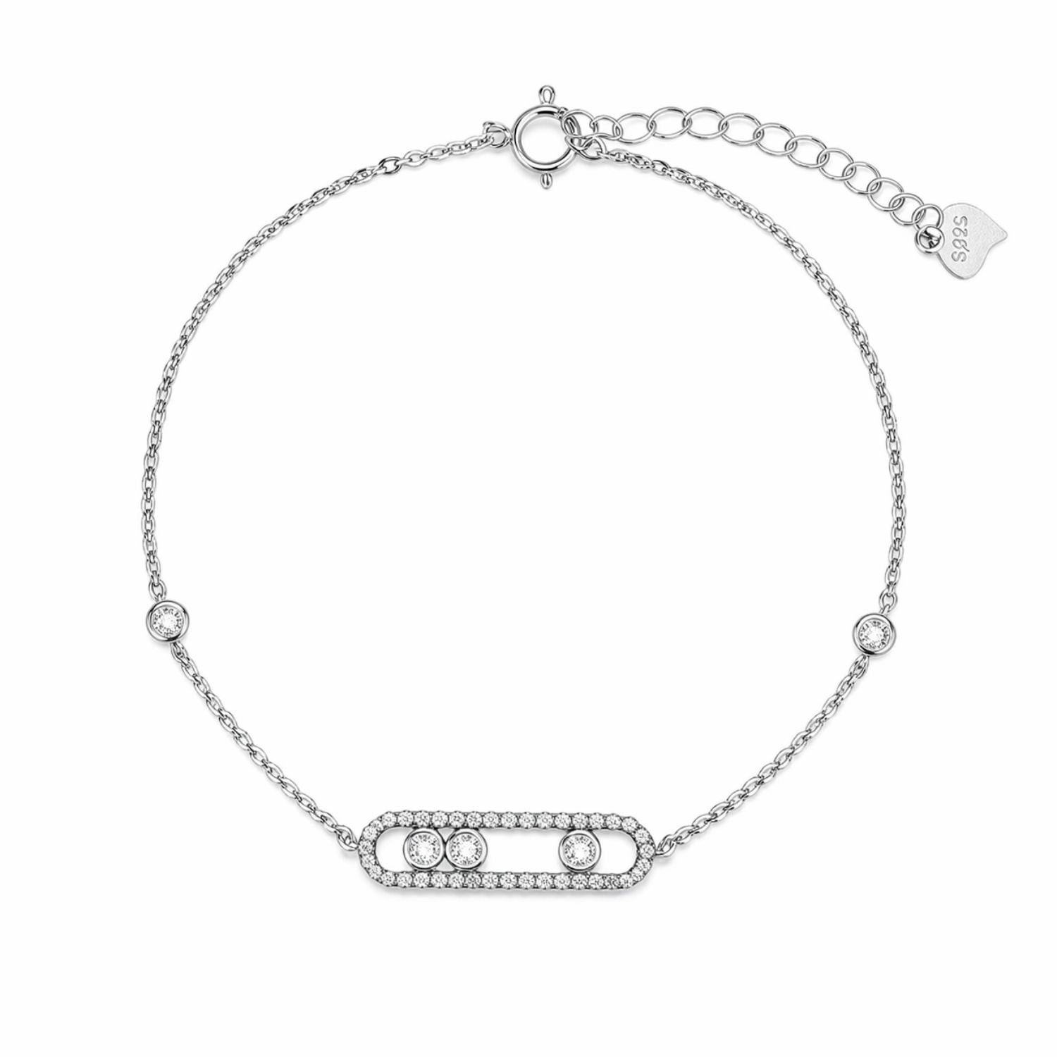 Bratara din argint Move cu design modern si elegant, un accesoriu rafinat ce adauga stil si personalitate oricarei tinute. Pietrele din interiorul elementului central sunt mobile.