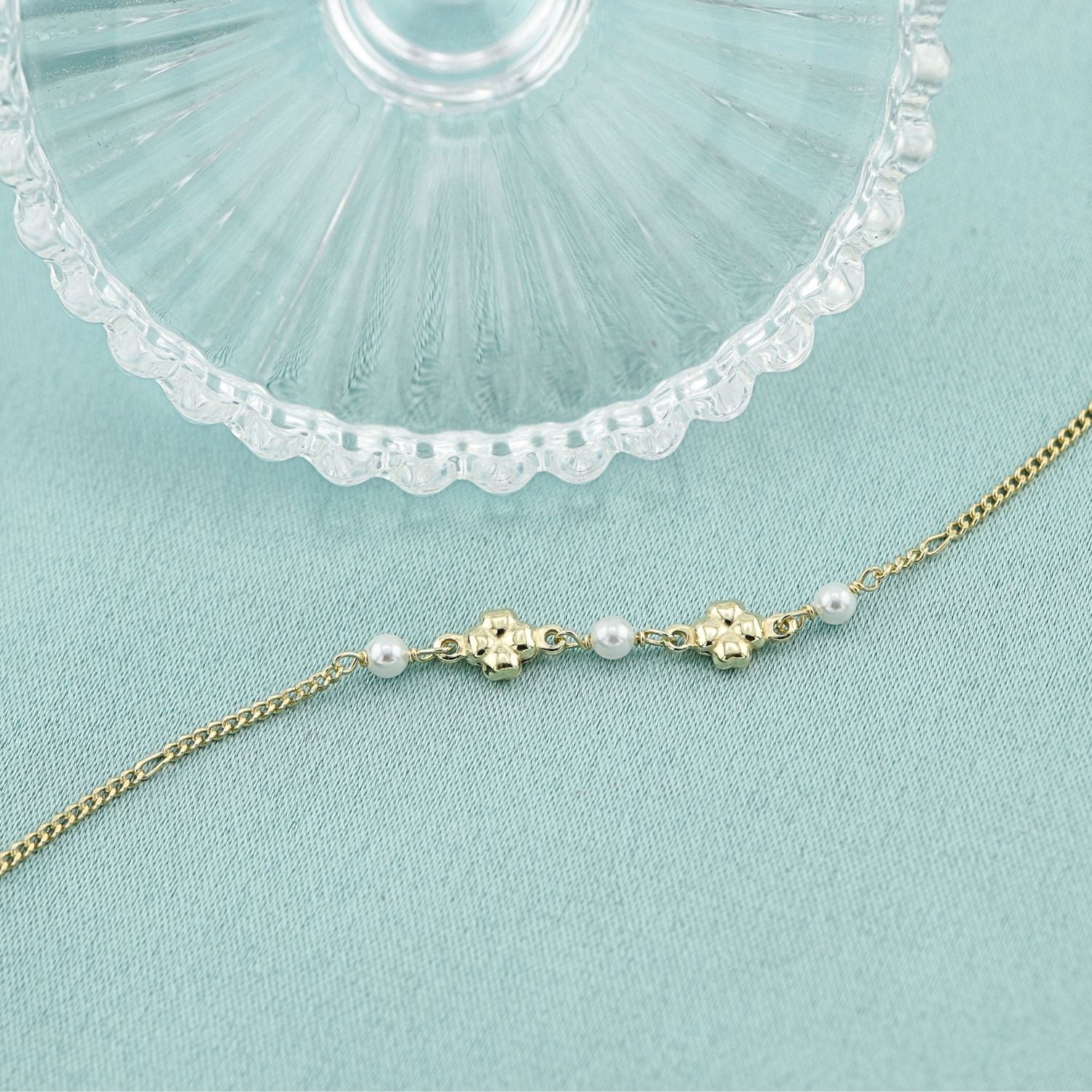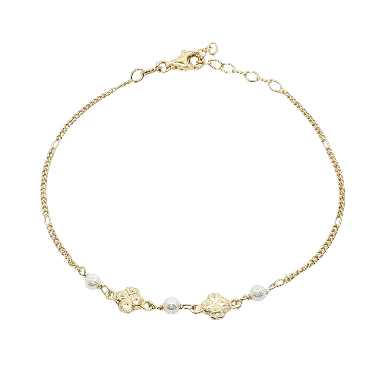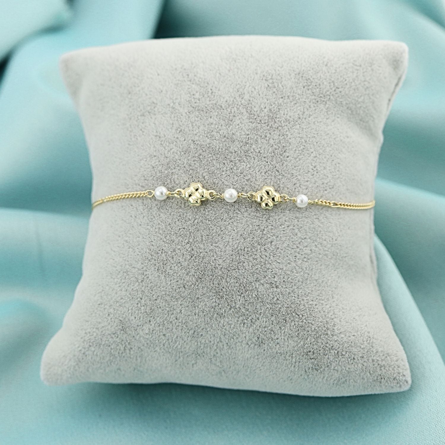 Bratara Argint Placat cu Aur 18k Perla si Trifoi