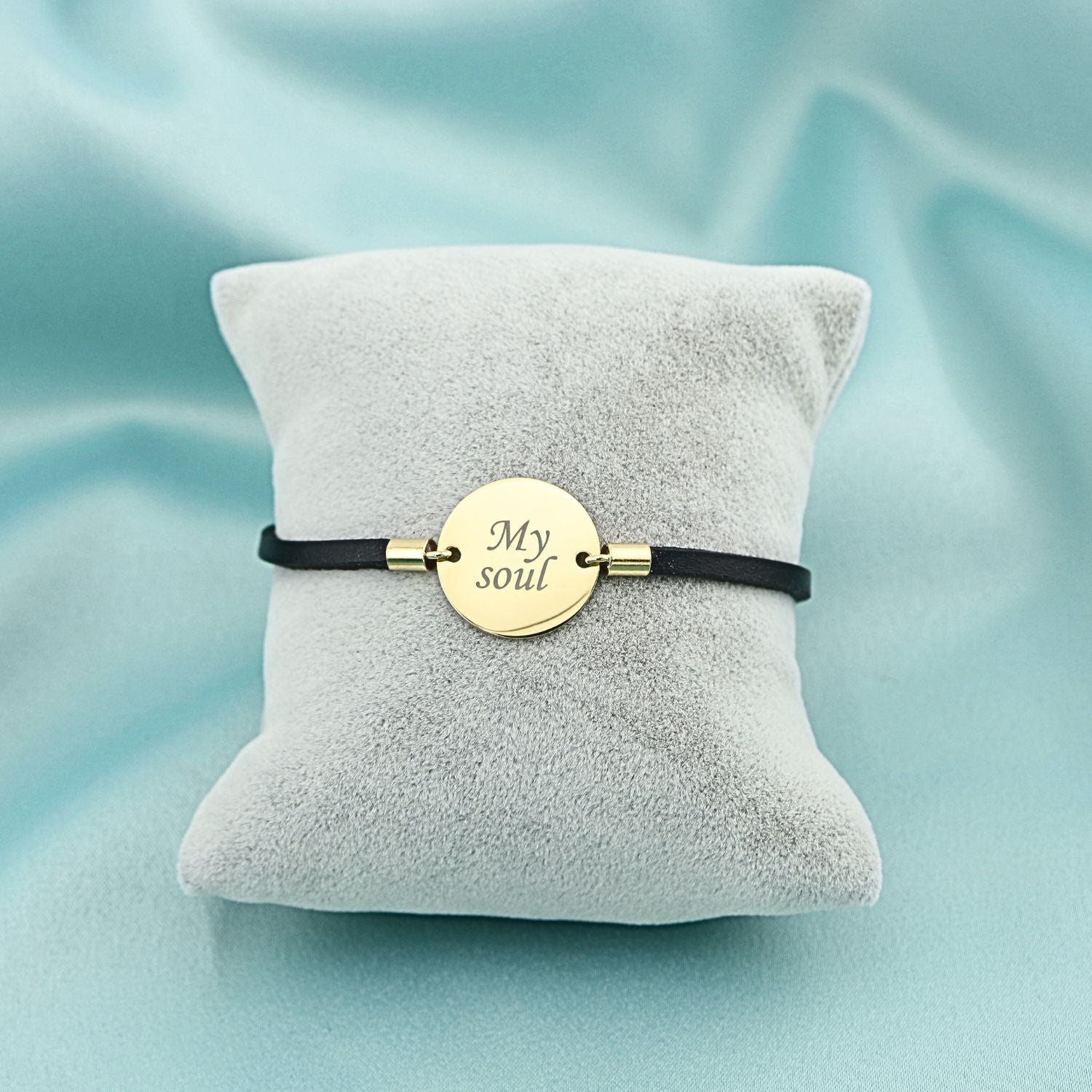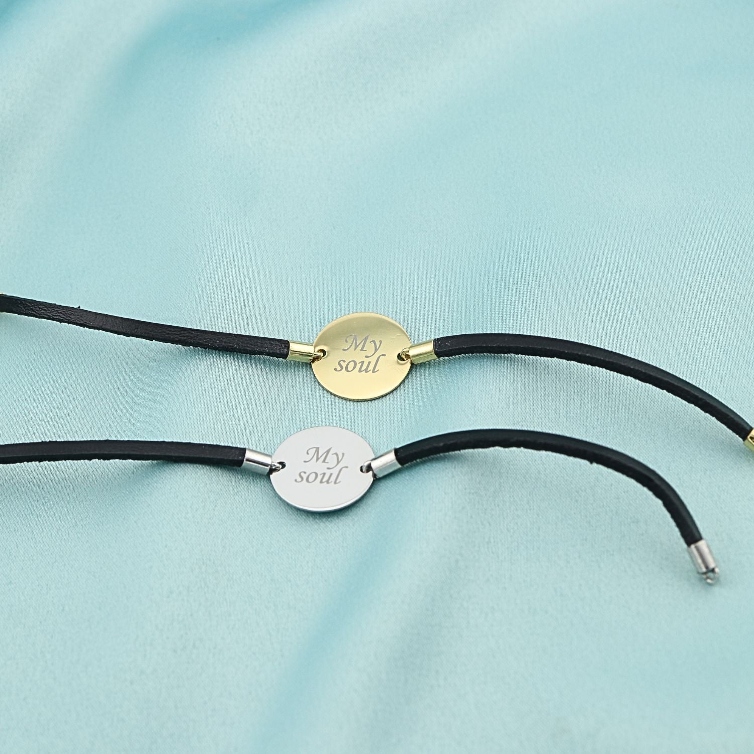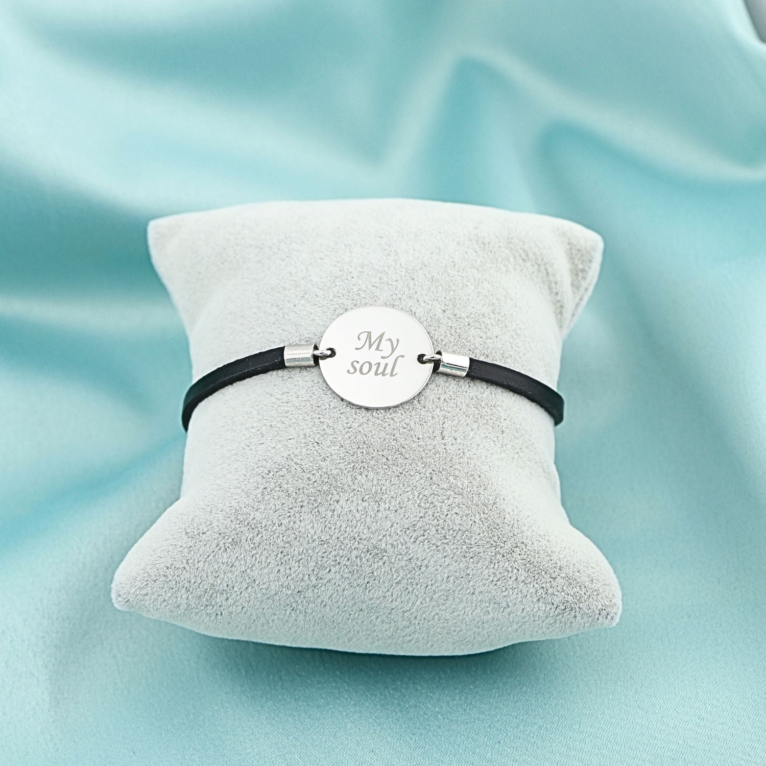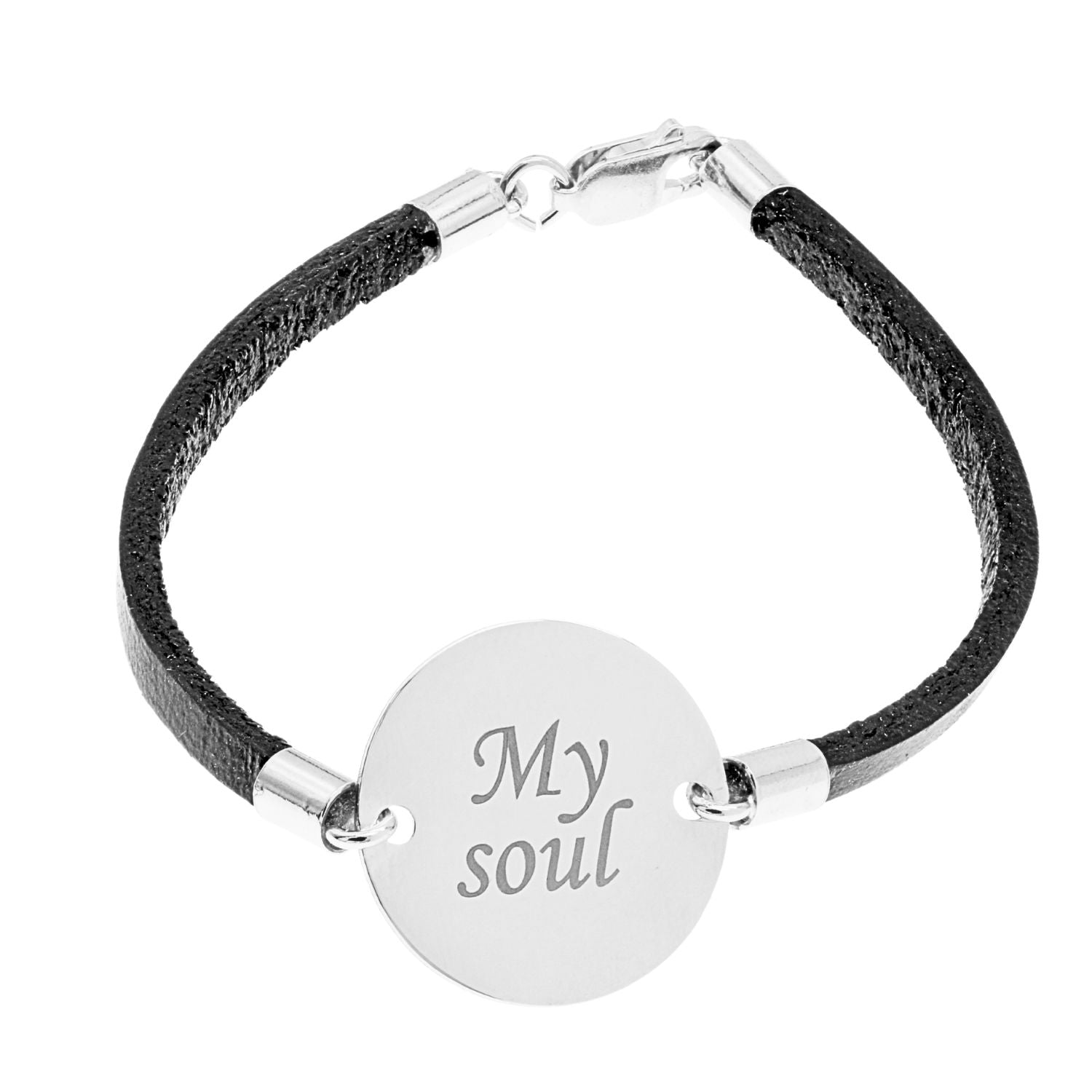 Bratara din piele naturala cu banut din argint gravat "My Soul". Un accesoriu modern, plin de stil si semnificatie personala.