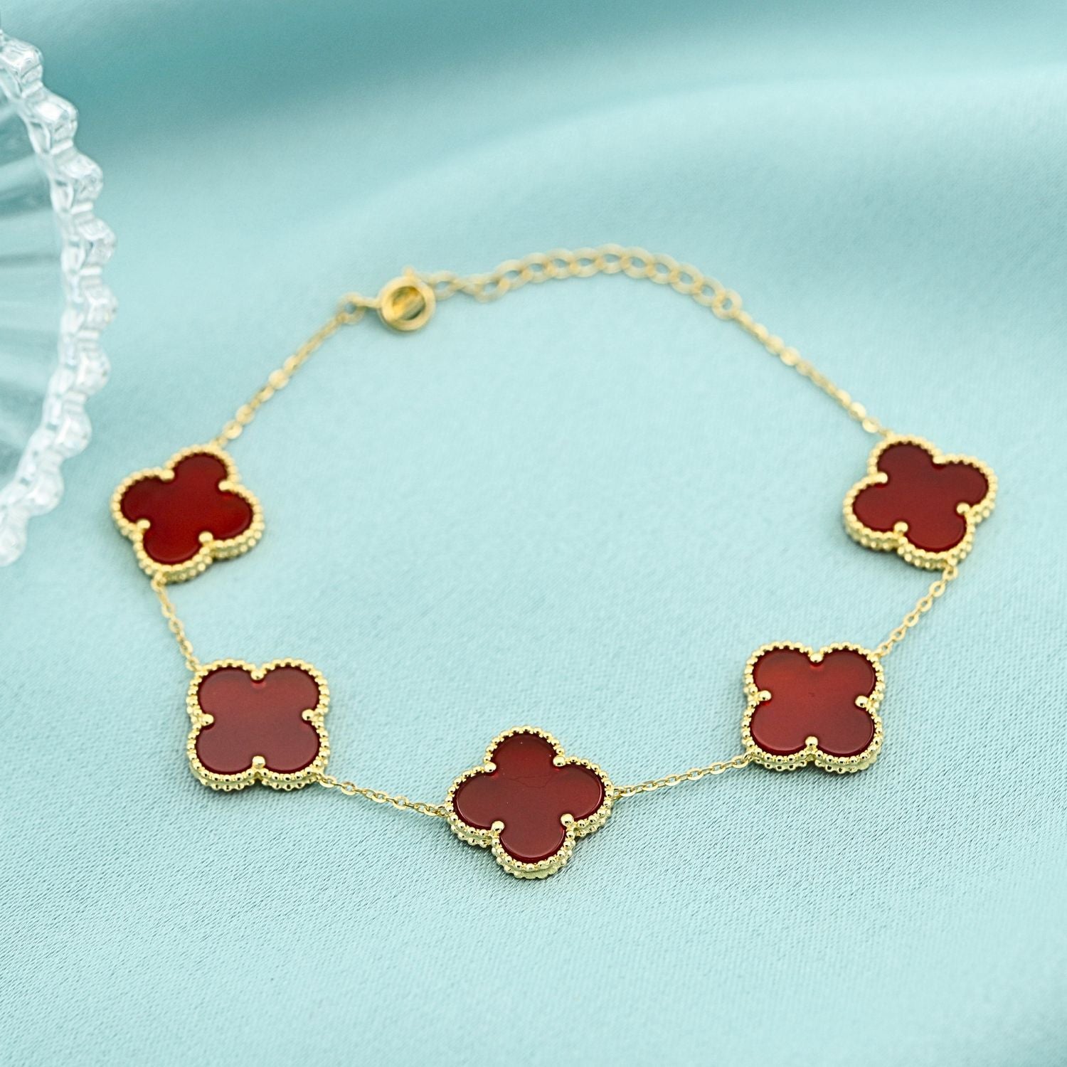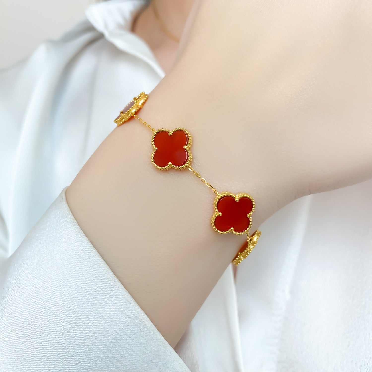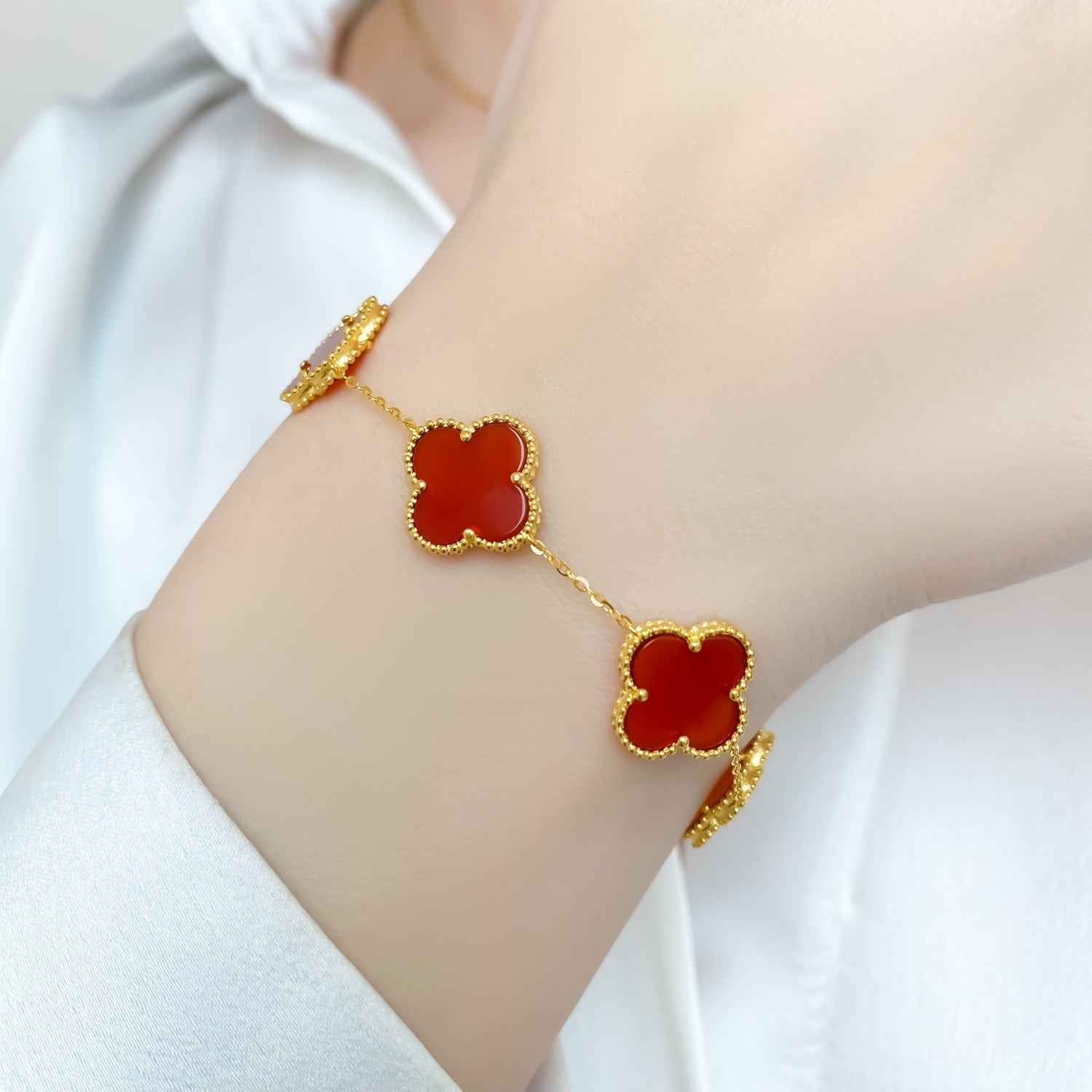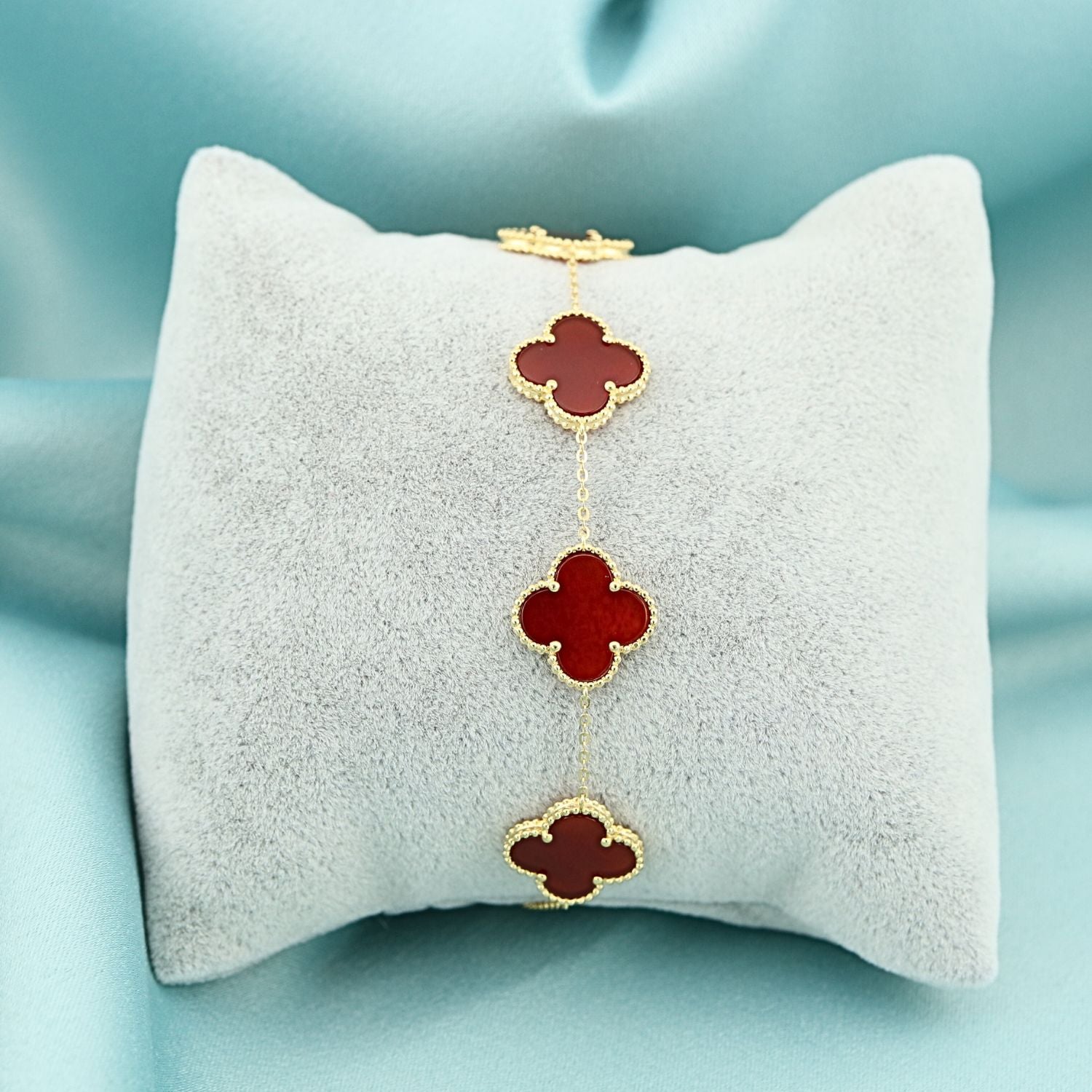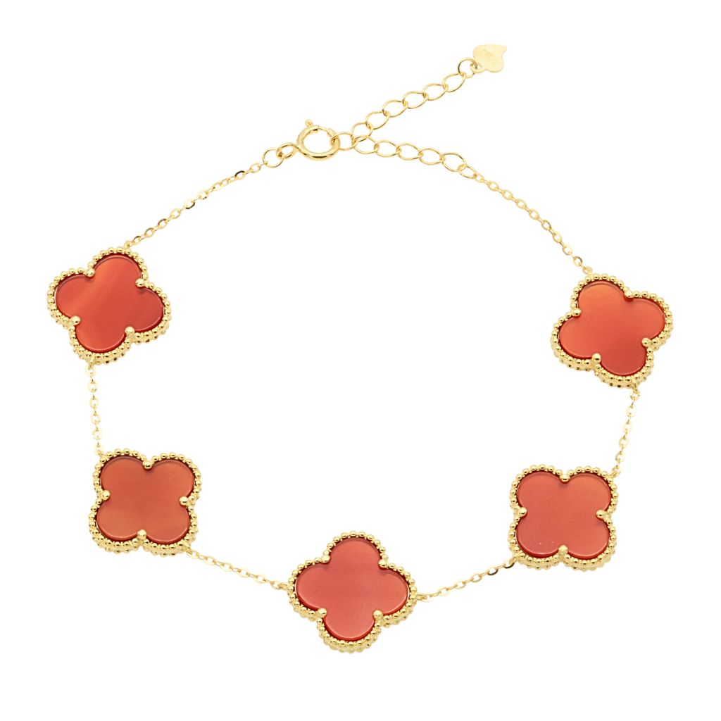 Bratara din argint 925 placat cu aur, cu flori delicate si pietre rosii, este o bijuterie rafinata si plina de viata. Designul floral adauga un aer romantic si fresh, in timp ce pietrele rosii aduc o nota vibranta, perfecta pentru un look feminin si sofisticat. Ideala pentru tinute de zi sau ocazii speciale, bratara este usoara, eleganta si versatila. Un cadou special sau o alegere perfecta pentru tine – cand vrei sa adaugi un strop de culoare si rafinament.