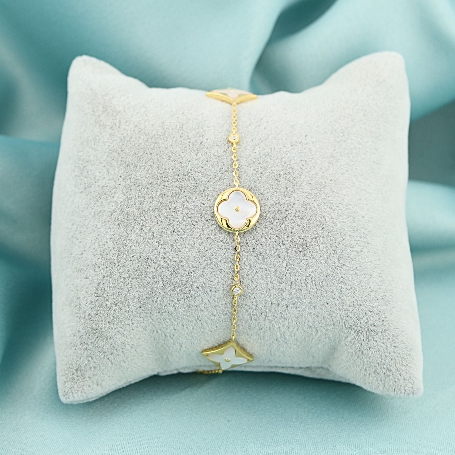 Bratara Argint Placat cu Aur Flori si Elemente Geometrice