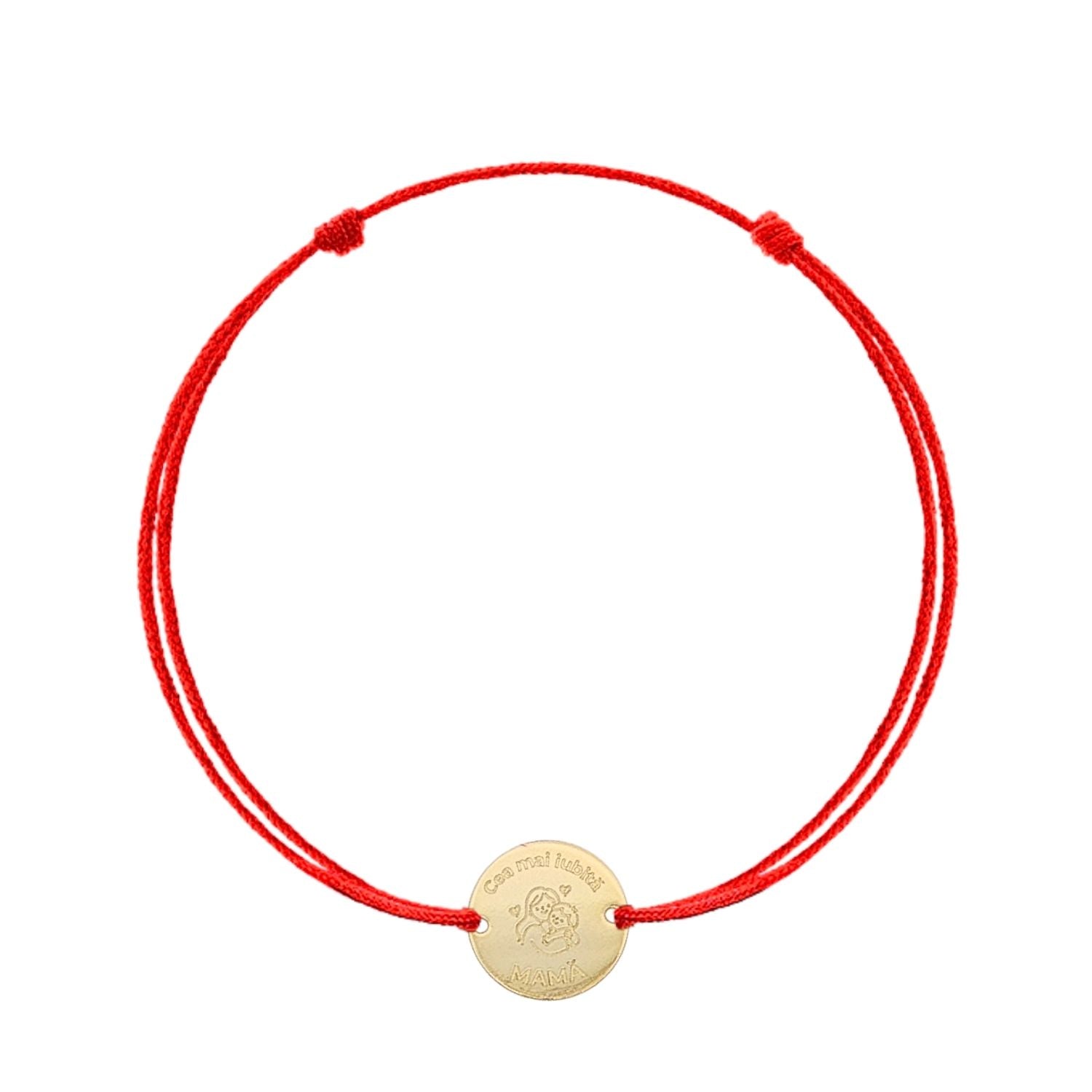 Bratara cu Snur rosu, cu Banut din argint placat cu aur "Cea mai iubita Mama" este un accesoriu delicat cu o puternica valoare emotionala. Banutul gravat transmite un mesaj special de iubire si recunostinta, fiind ideal pentru a celebra legatura unica dintre mama si copil. Snurul reglabil asigura confort, iar placarea cu aur ofera un aspect elegant si rafinat.