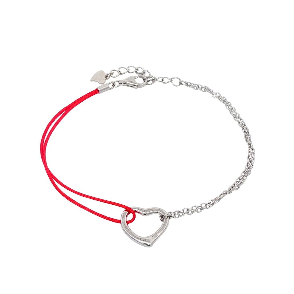 Bratara Argint si Snur Rosu Inima