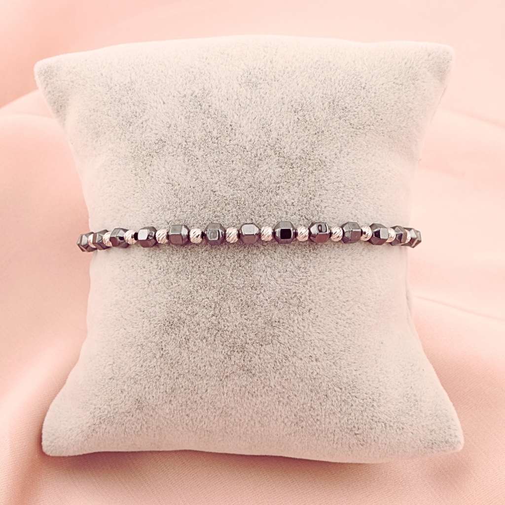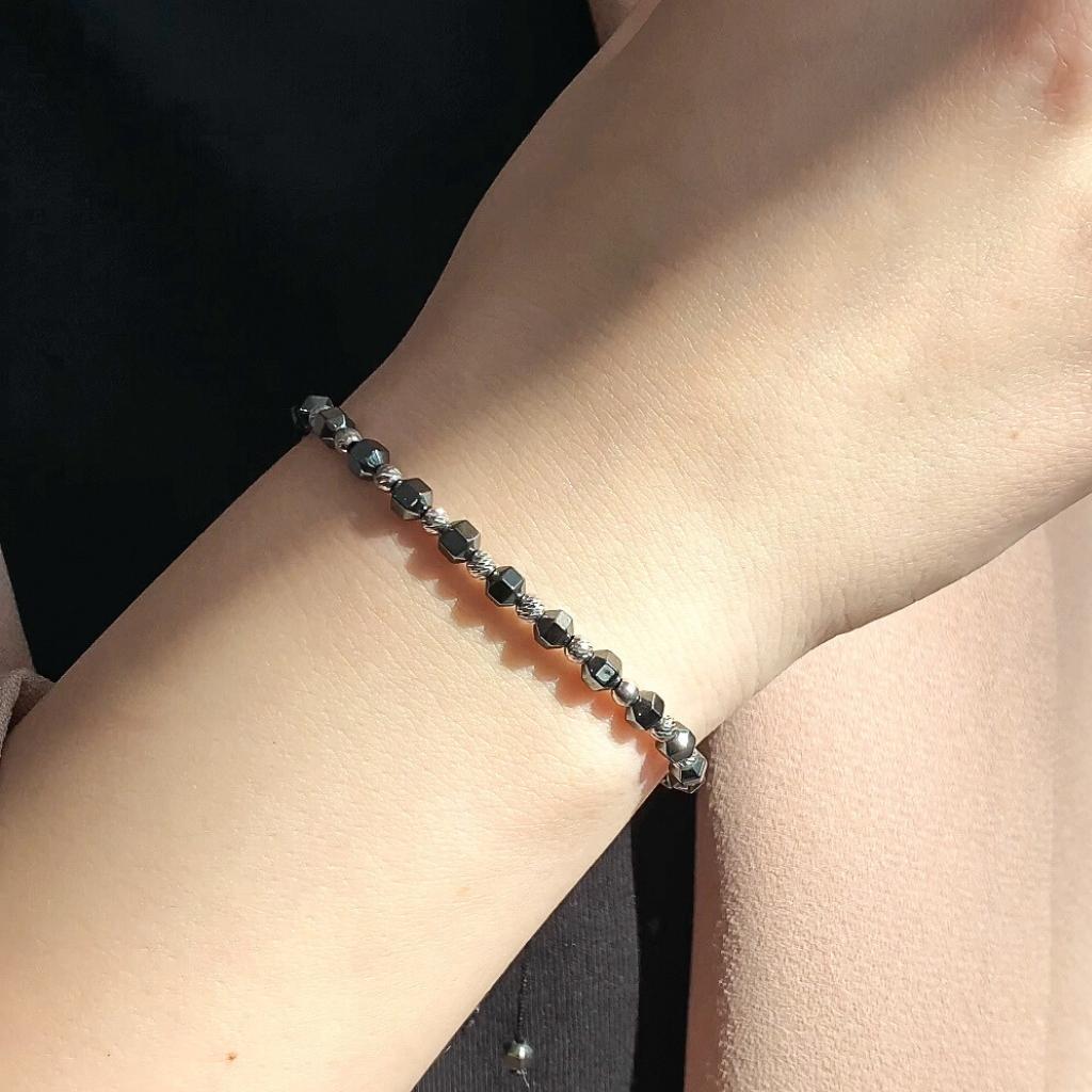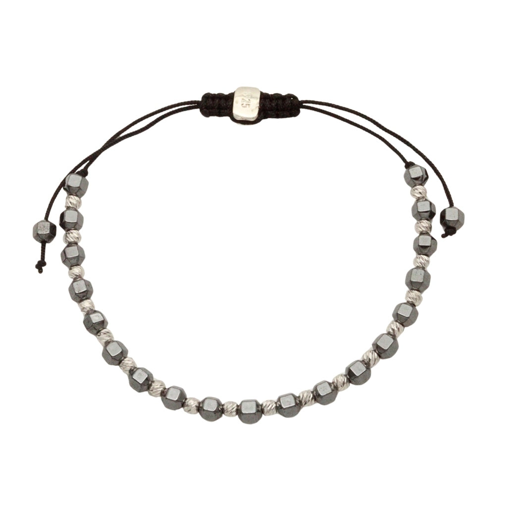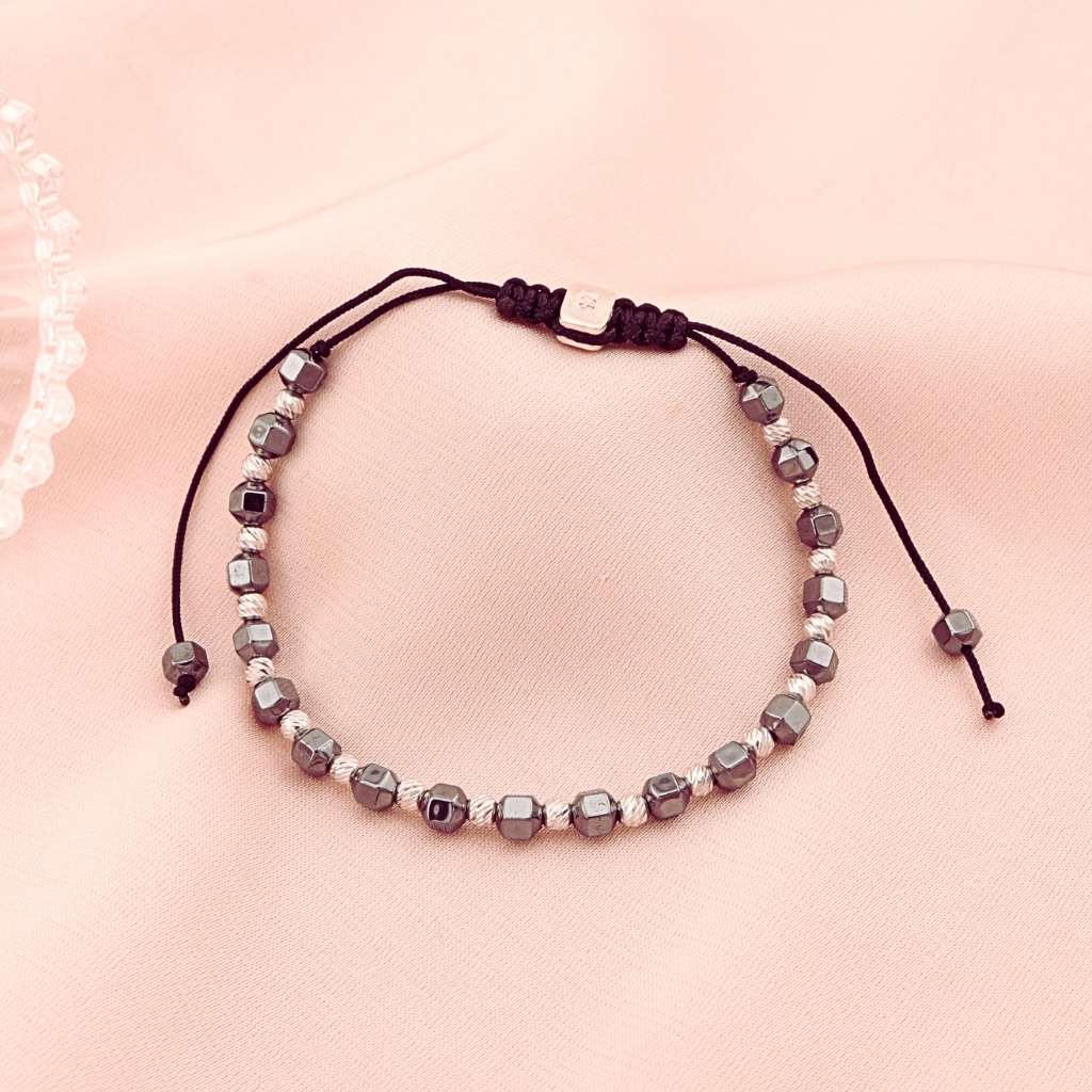 Bratara Argint Snur cu Bile Hematit si Bile Argint