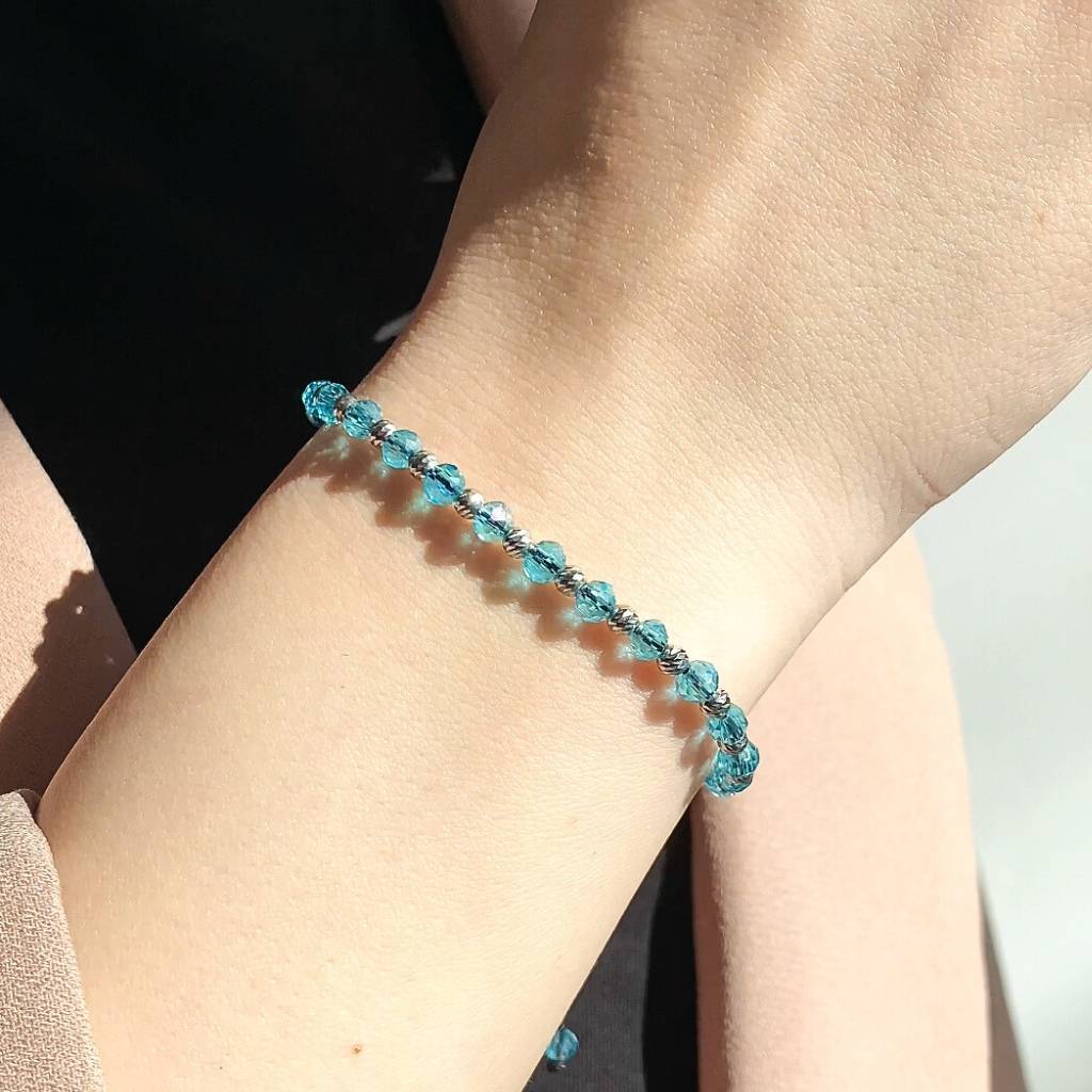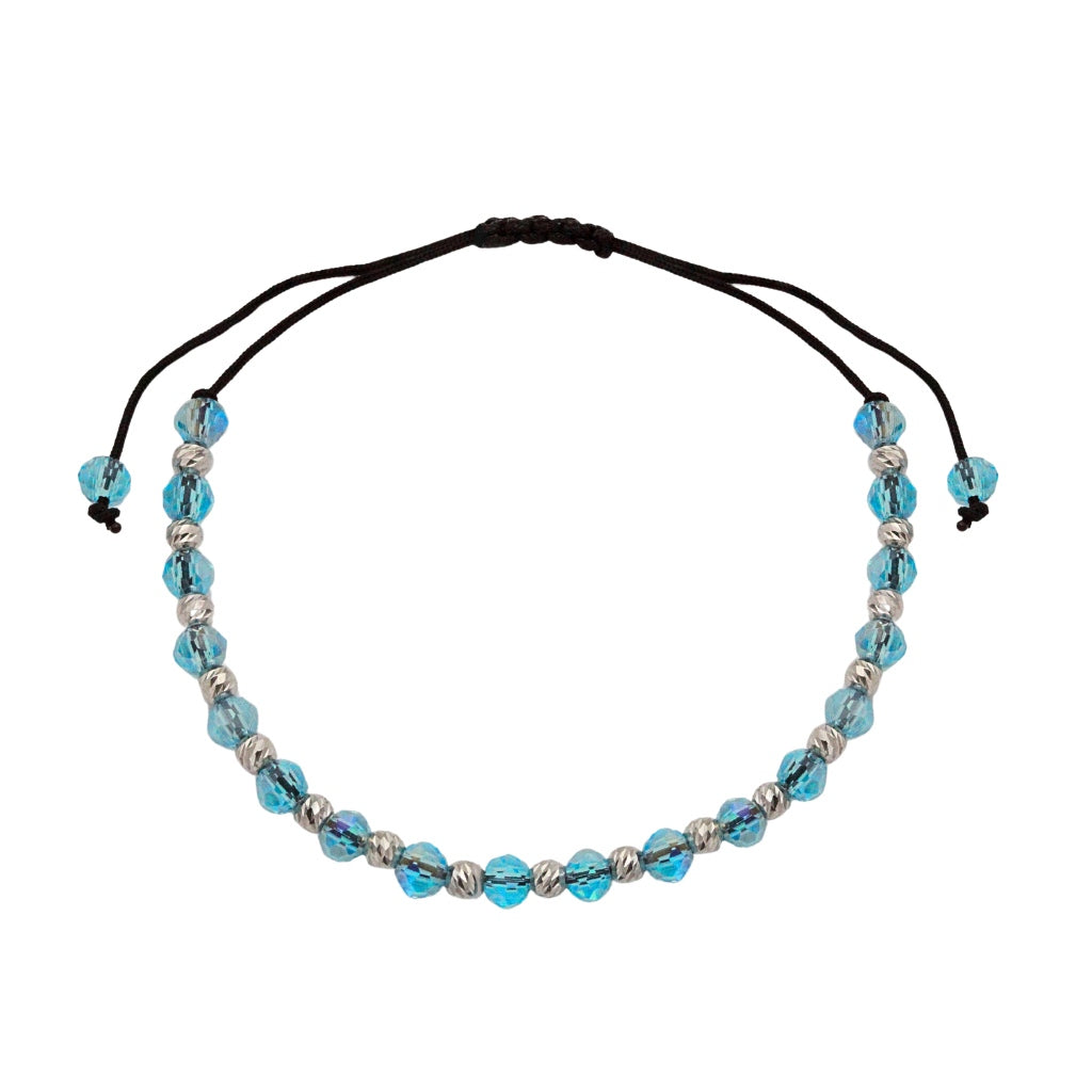 Bratara Argint Snur cu Bile si Cristal Turcoaz