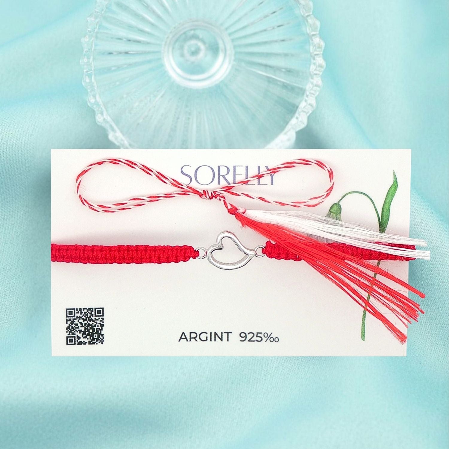 Bratara delicata din argint cu snur și inimă ❤️, un accesoriu elegant și simbolic, perfect pentru cadou sau ținute zilnice.