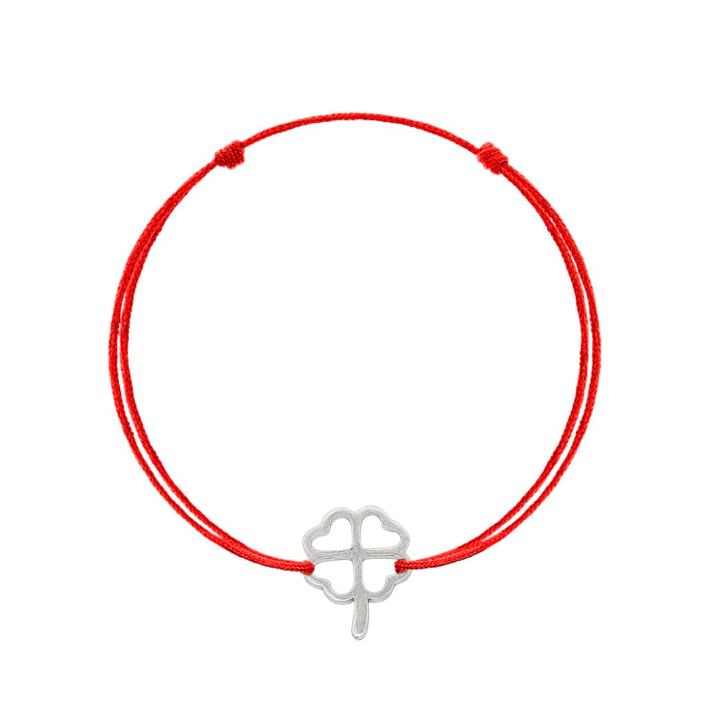 Bratara Argint Snur Rosu cu Trifoi