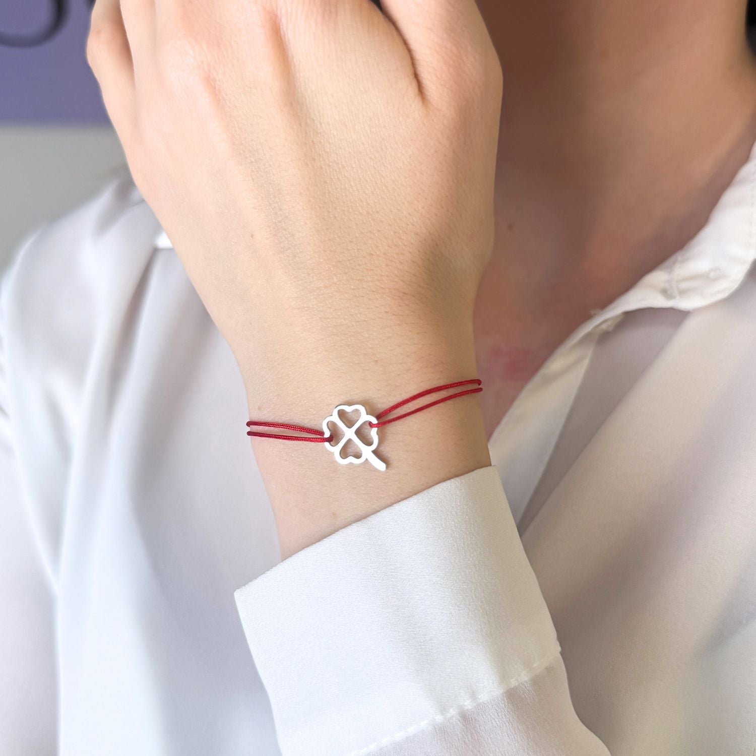 Bratara din argint 925 cu snur si trifoi, simbol al norocului 🍀, un accesoriu delicat si potrivit pentru orice tinuta sau cadou special.