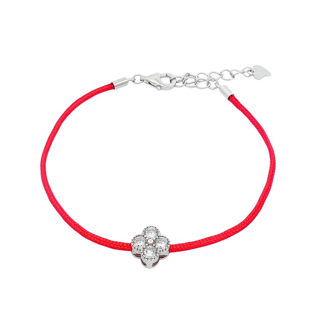 Bratara Argint Snur Rosu Floare cu Pietre Albe