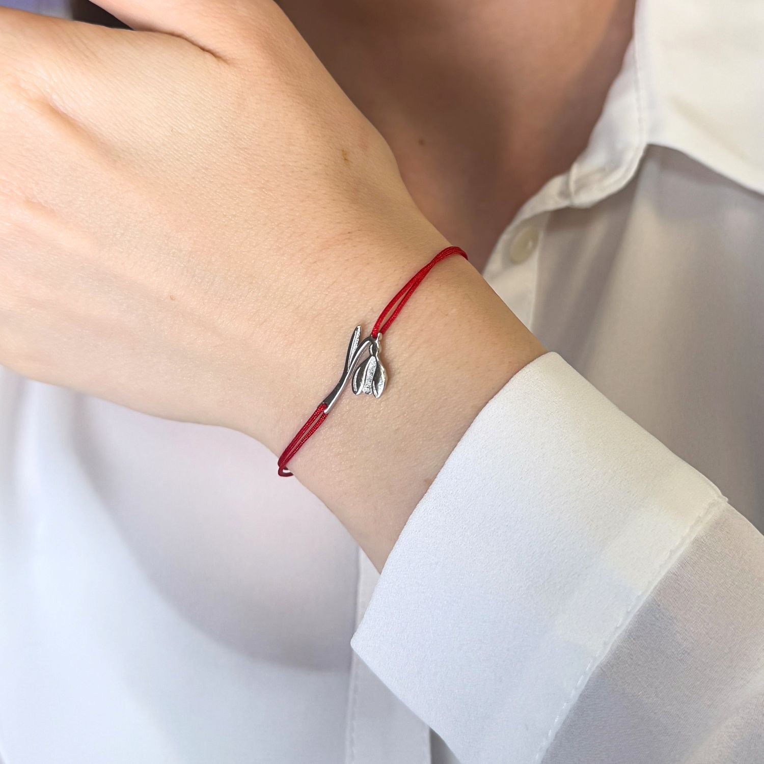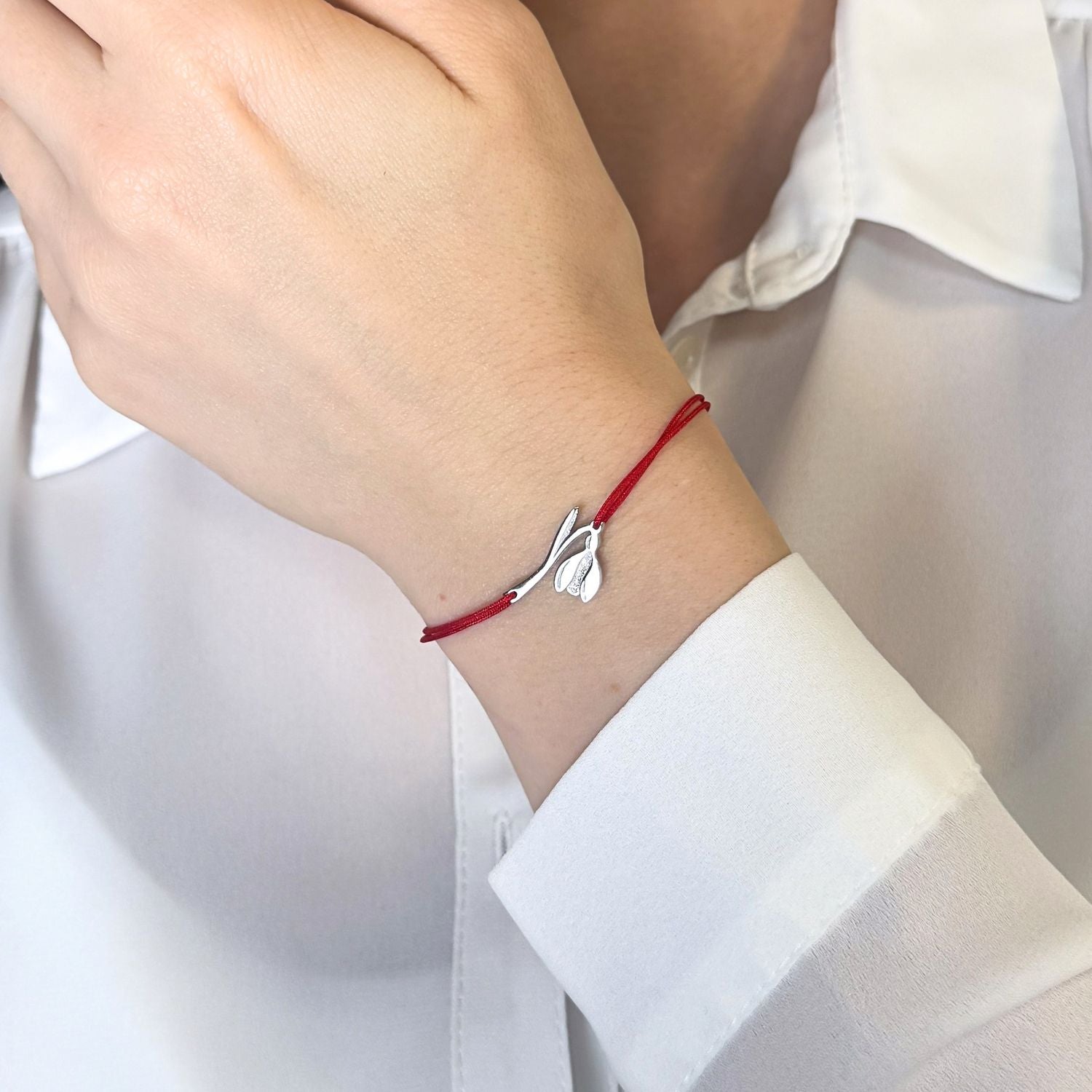 Bratara delicata din argint placat cu rodiu pentru extra protectie cu snur si charm ghiocel, simbol al primaverii si al norocului, ideala pentru cadou sau martisor.