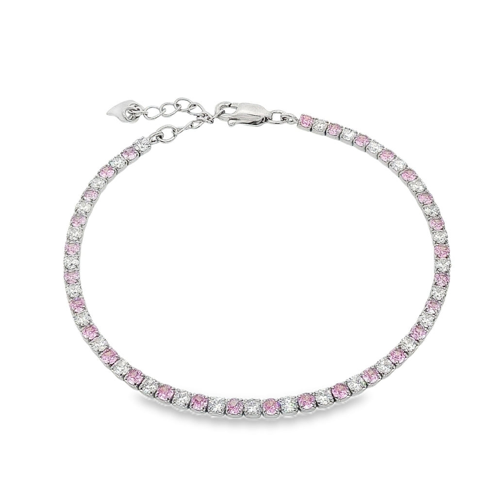 Bratara Argint Tennis 2mm cu Pietre Albe si Roz