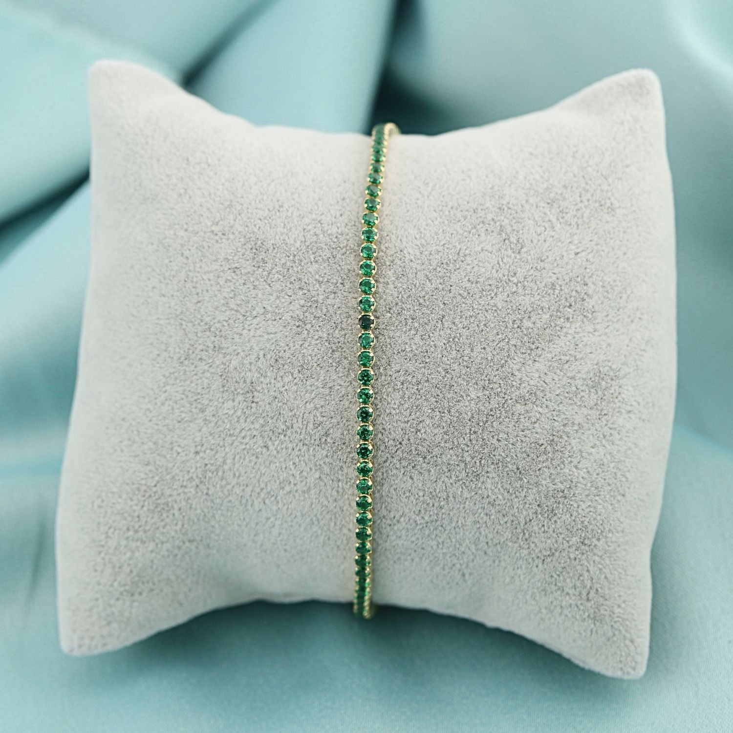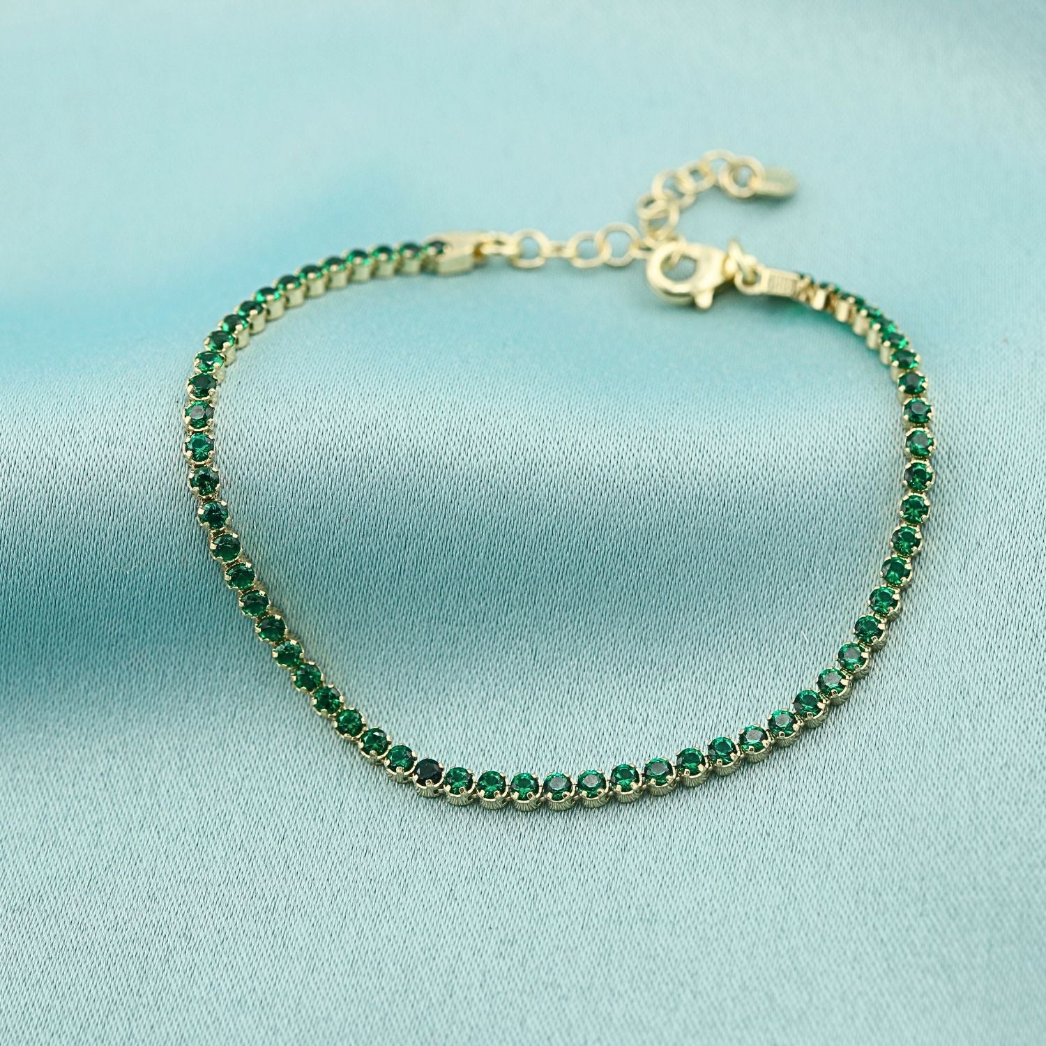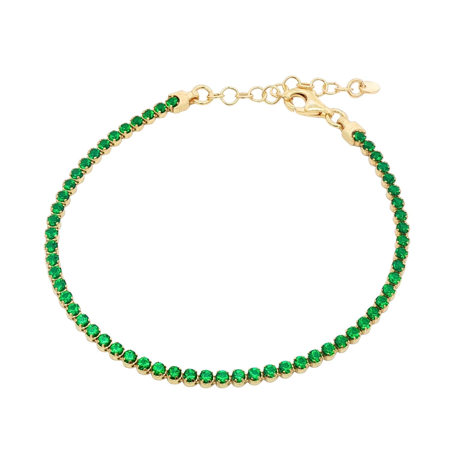 Bratara Argint Placat cu Aur 18k Tennis cu Pietre Verzi