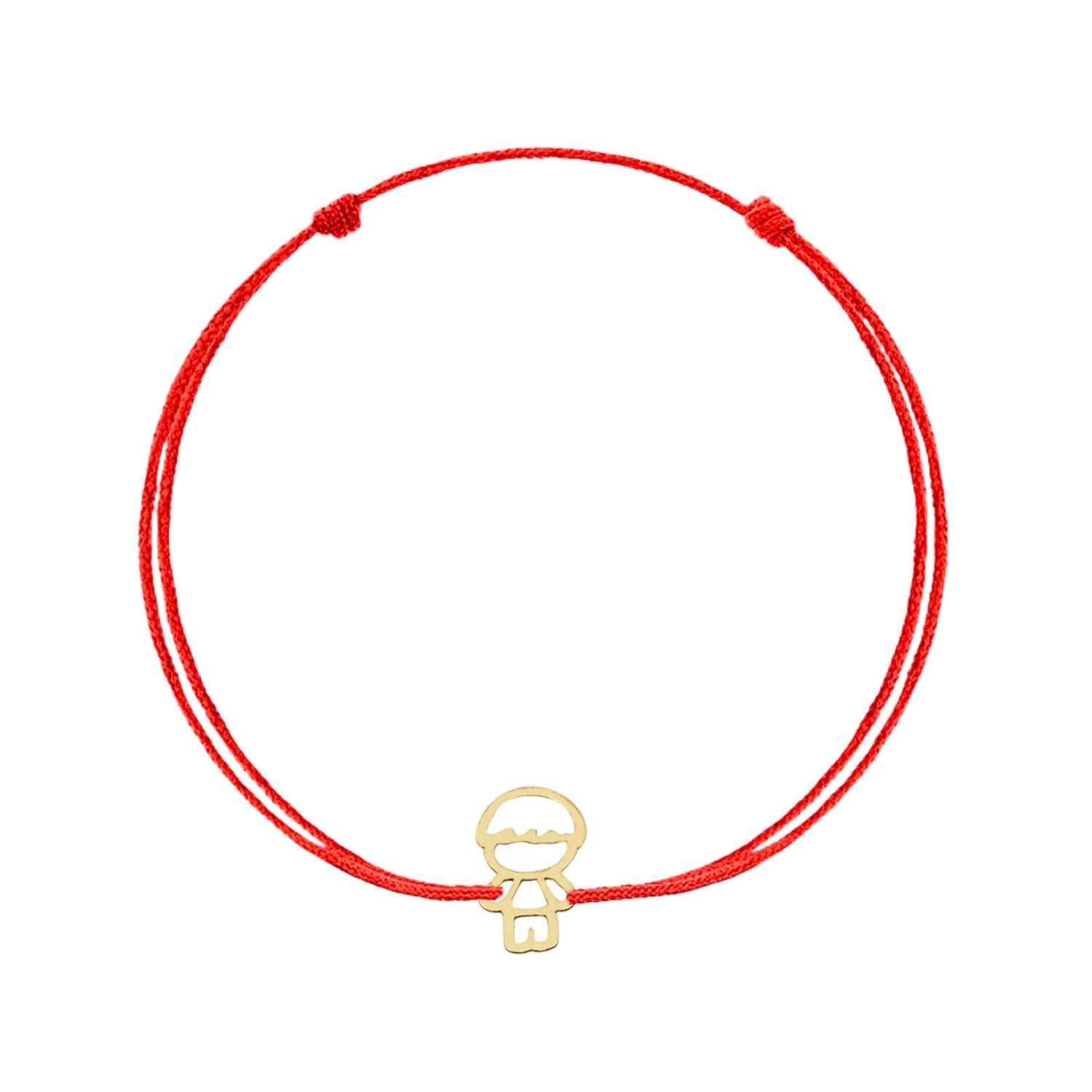 Bratara din aur 14k cu snur și simbol băiețel, bijuterie delicată, perfectă pentru a celebra dragostea și protecția celor dragi.