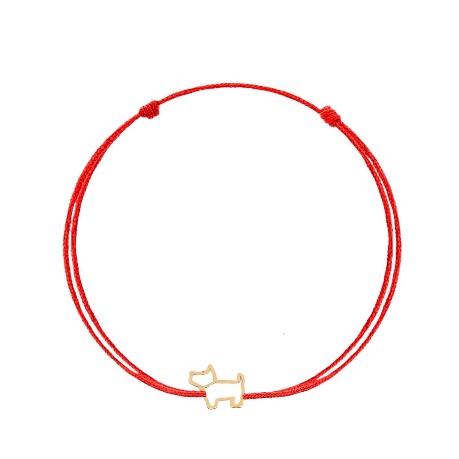 Bratara din aur 14k cu snur si simbol catel, bijuterie delicata ce exprima loialitate, afectiune si stil modern.