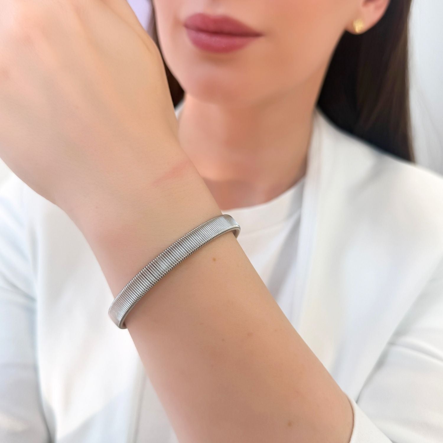 Brățară fixă, elegantă și rafinată – accesoriu versatil, perfect pentru a completa orice ținută cu un stil modern și sofisticat.