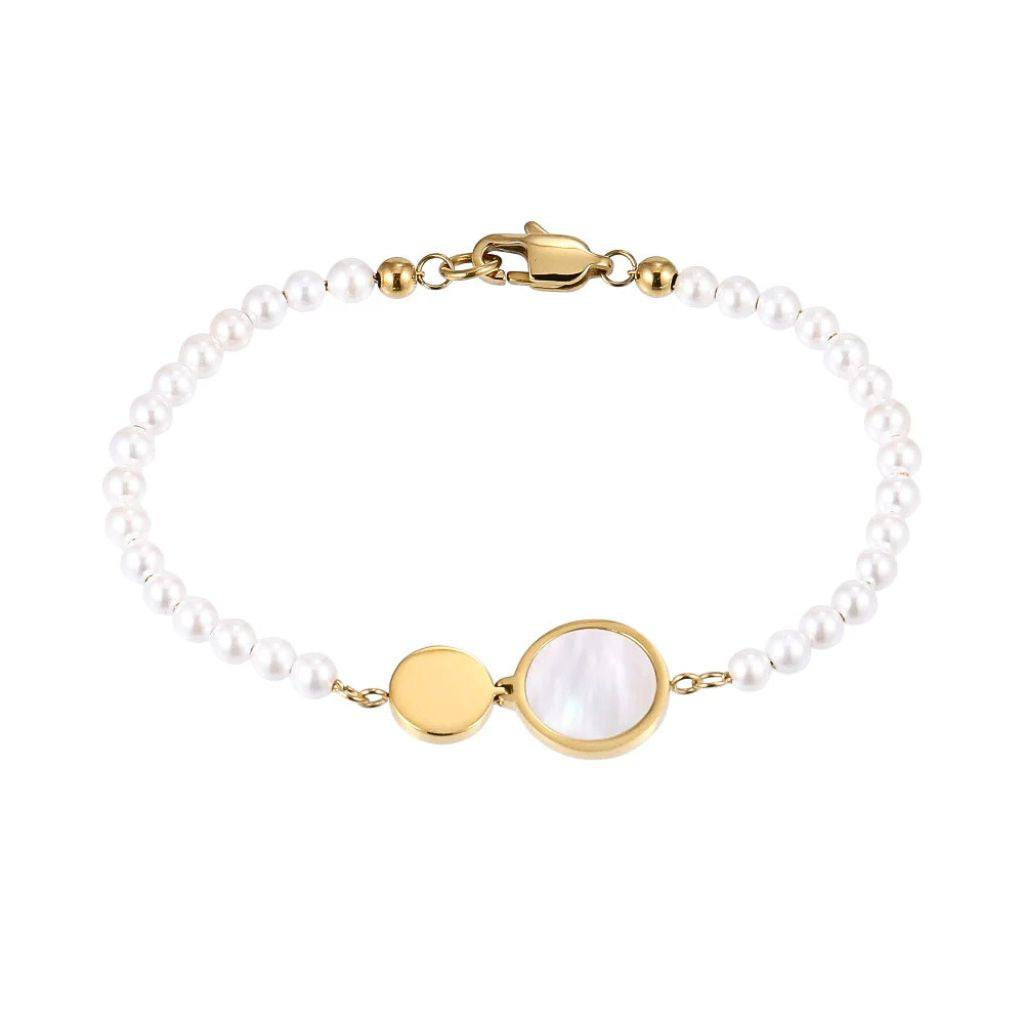 Bratara cu Perle si Banut Gravabil placata cu aur 14k este o bijuterie delicata si sofisticata, care imbina eleganta clasica a perlelor de cultura cu nota moderna a unui detaliu personalizabil. Banutul poate fi gravat cu initiale, o data sau un simbol, transformand bratara intr-un accesoriu unic si plin de semnificatie. Placajul cu aur 14k ofera stralucire calda si lux discret, iar perlele naturale adauga un accent feminin si rafinat. O bijuterie ideala pentru cadouri speciale sau purtare zilnica.