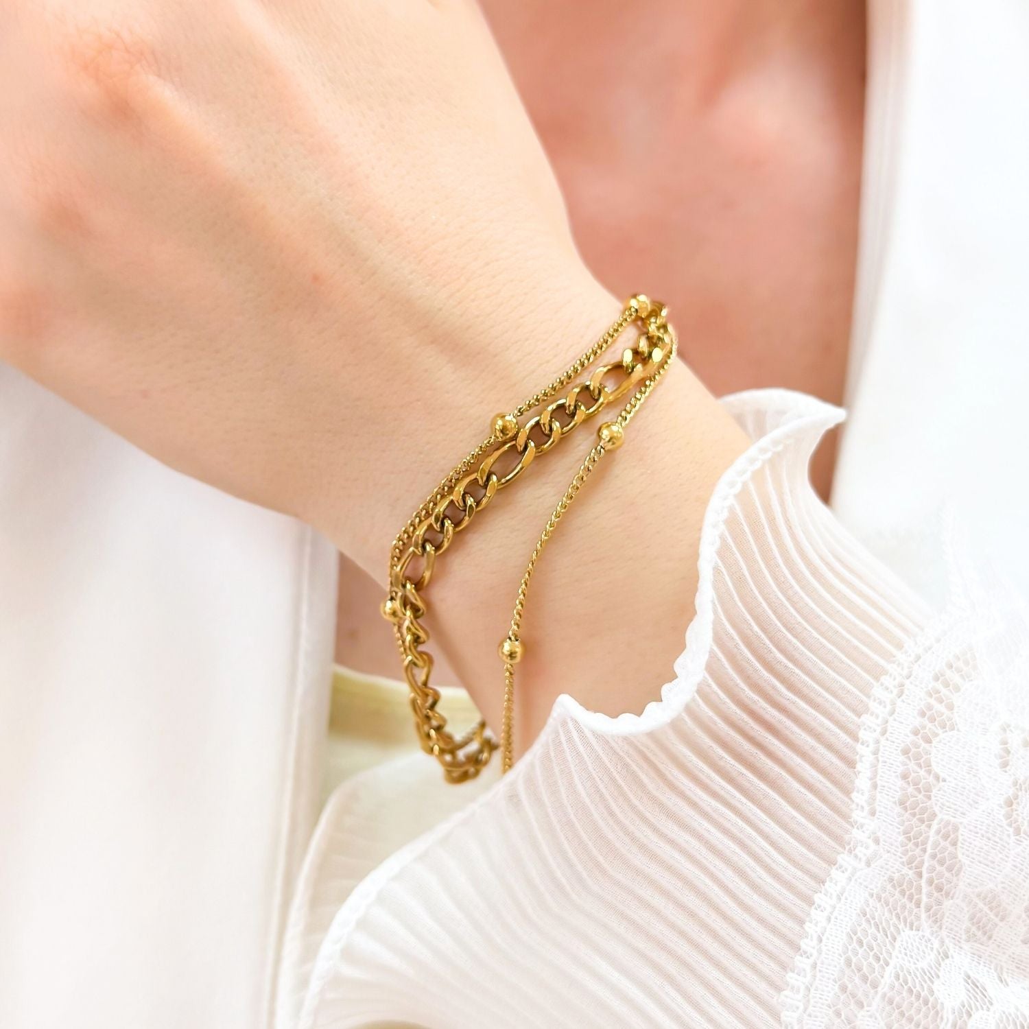 Bratara Layered Cuban din otel chirurgical inoxidabil placata cu aur este un accesoriu indraznet si modern, creat pentru un look statement.
