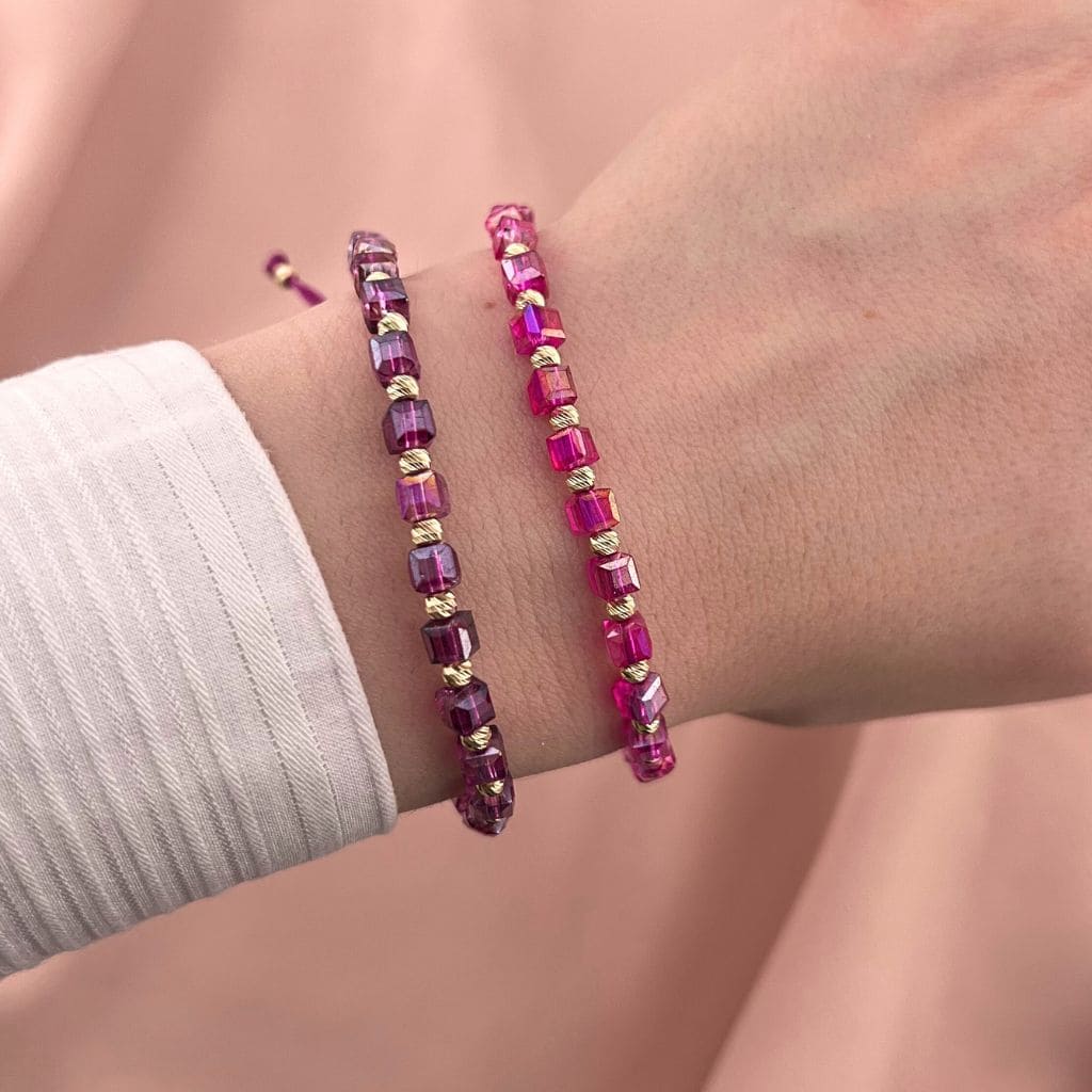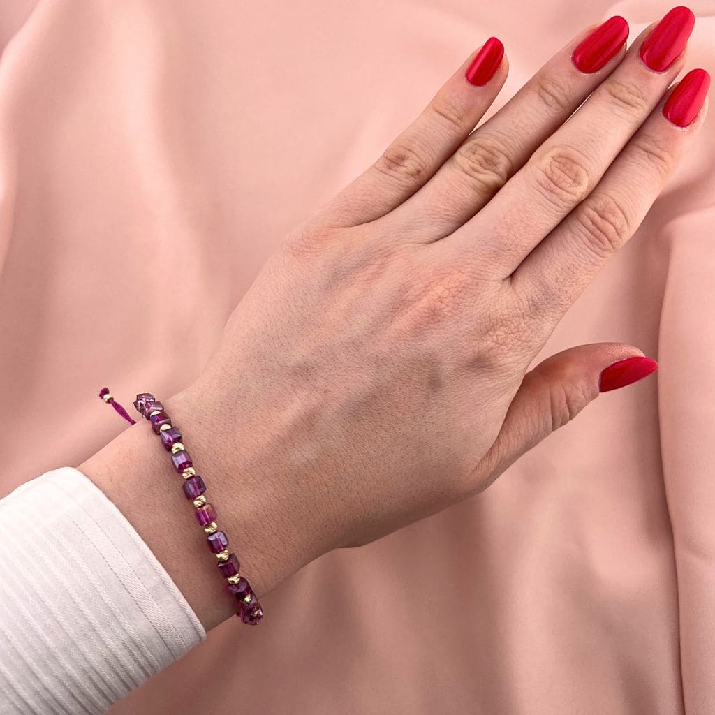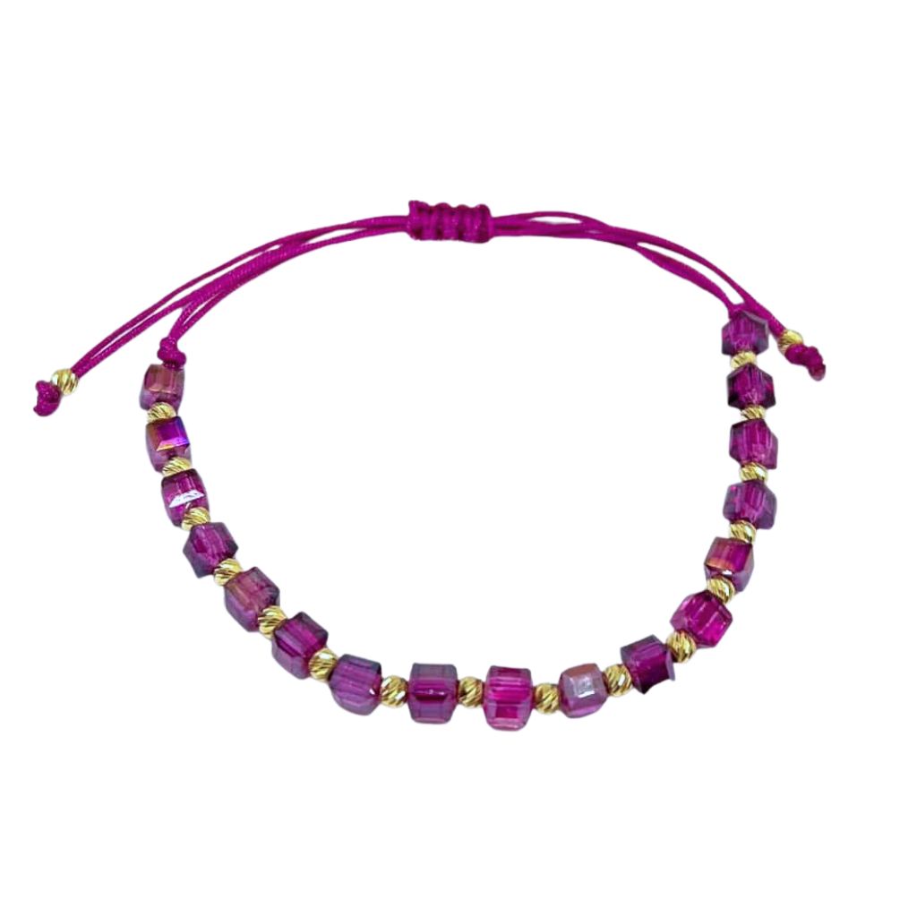 Bratara Snur cu Bile Aur 14k si Cristal Cubic Mov 4mm