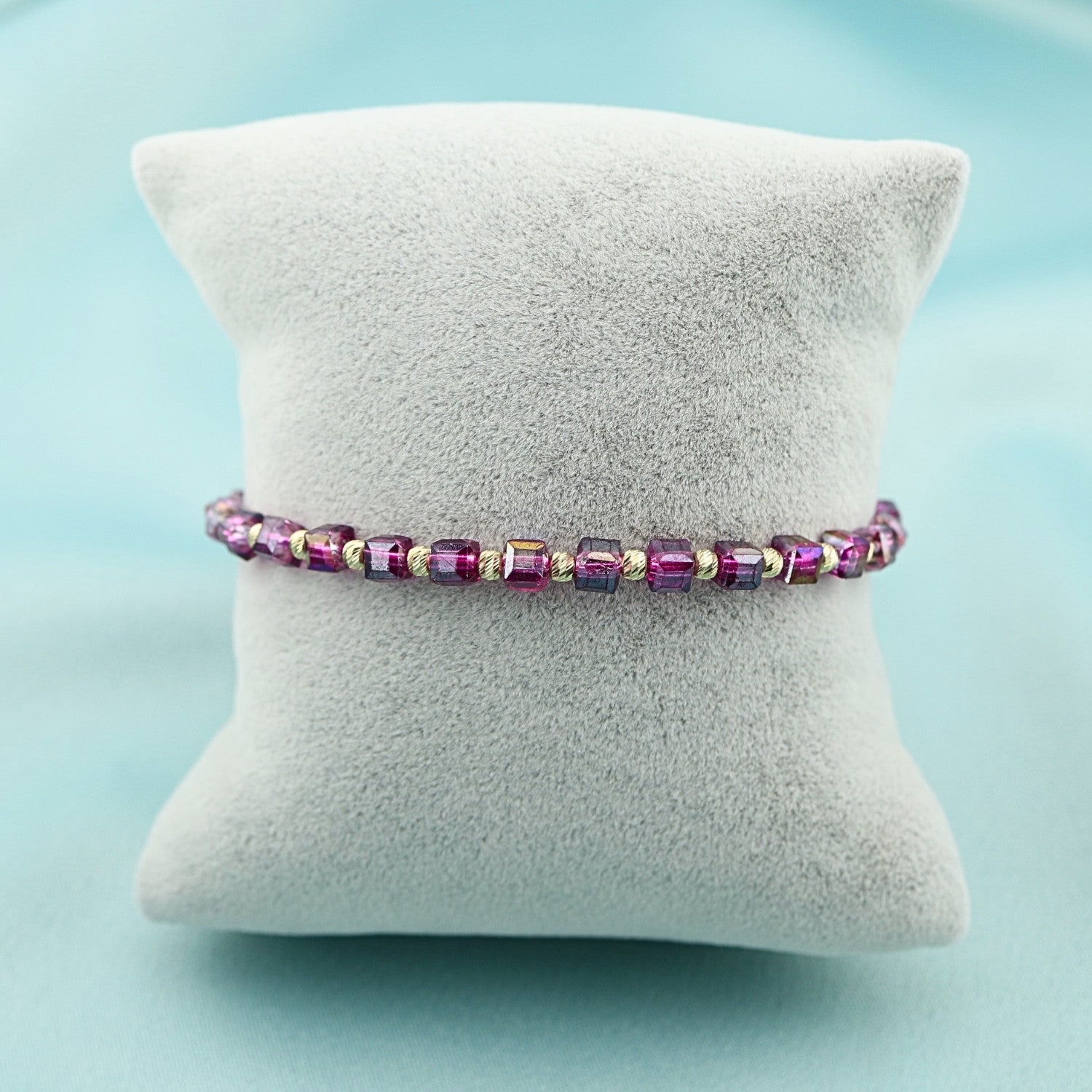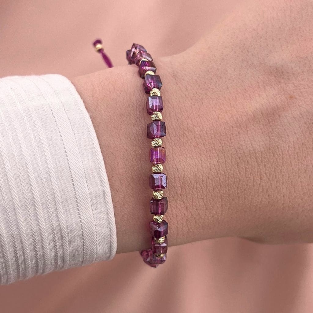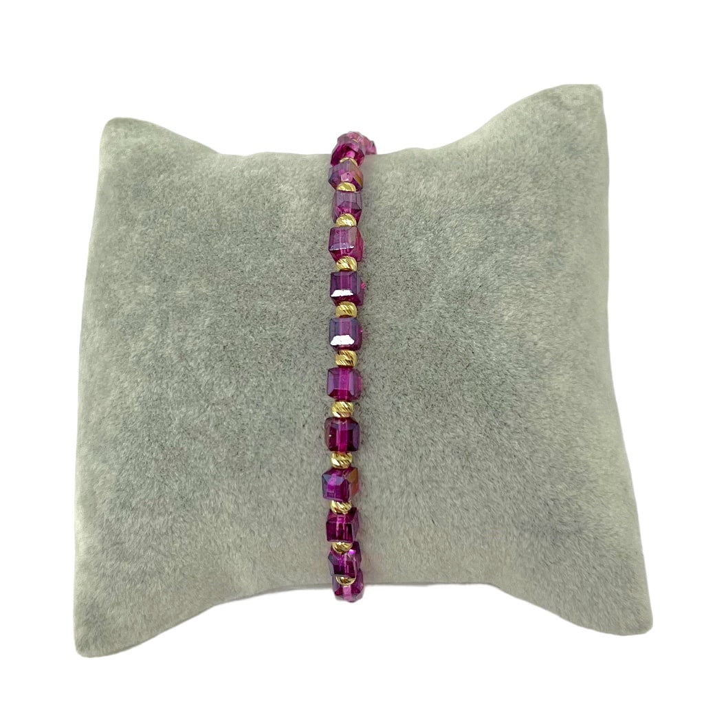 Bratara Snur cu Bile Aur 14k si Cristal Cubic Mov 4mm