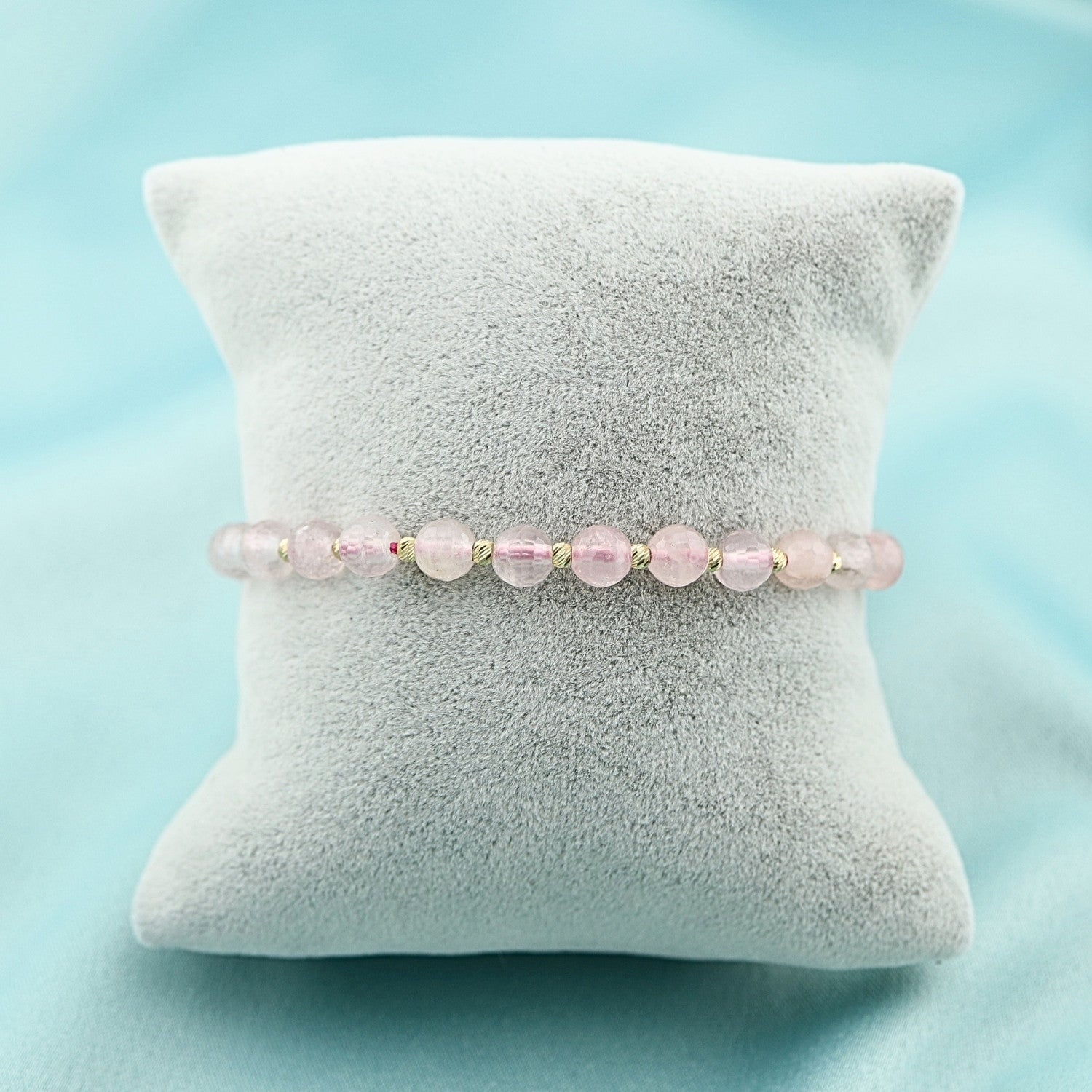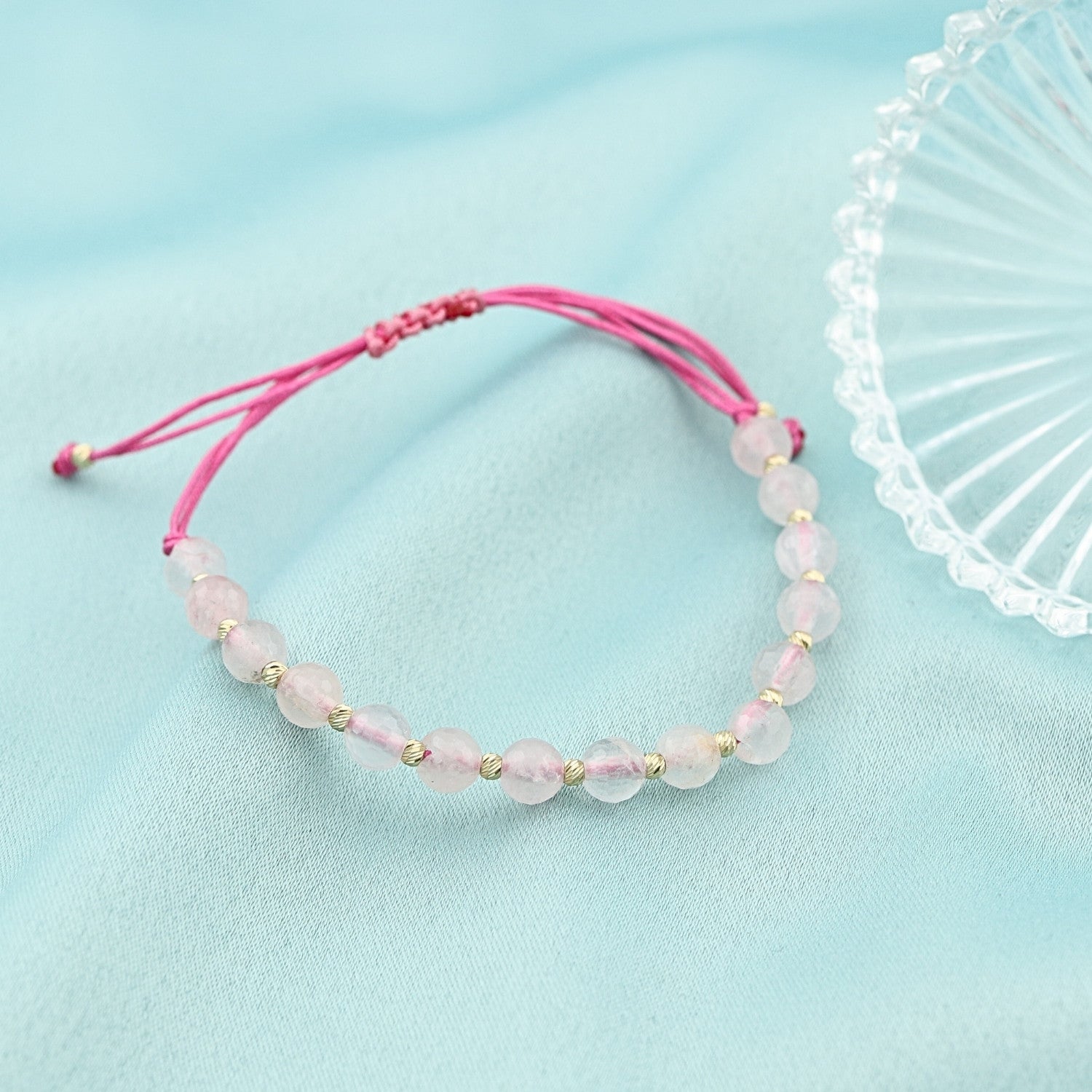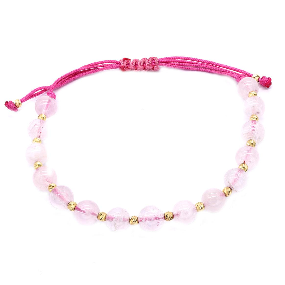 Bratara Snur cu Bile Aur 14k si Cuart Roz 5mm