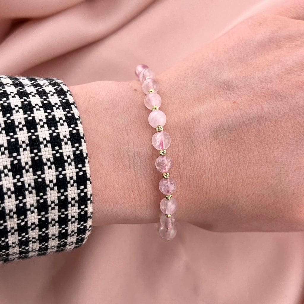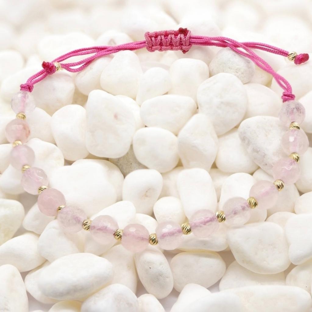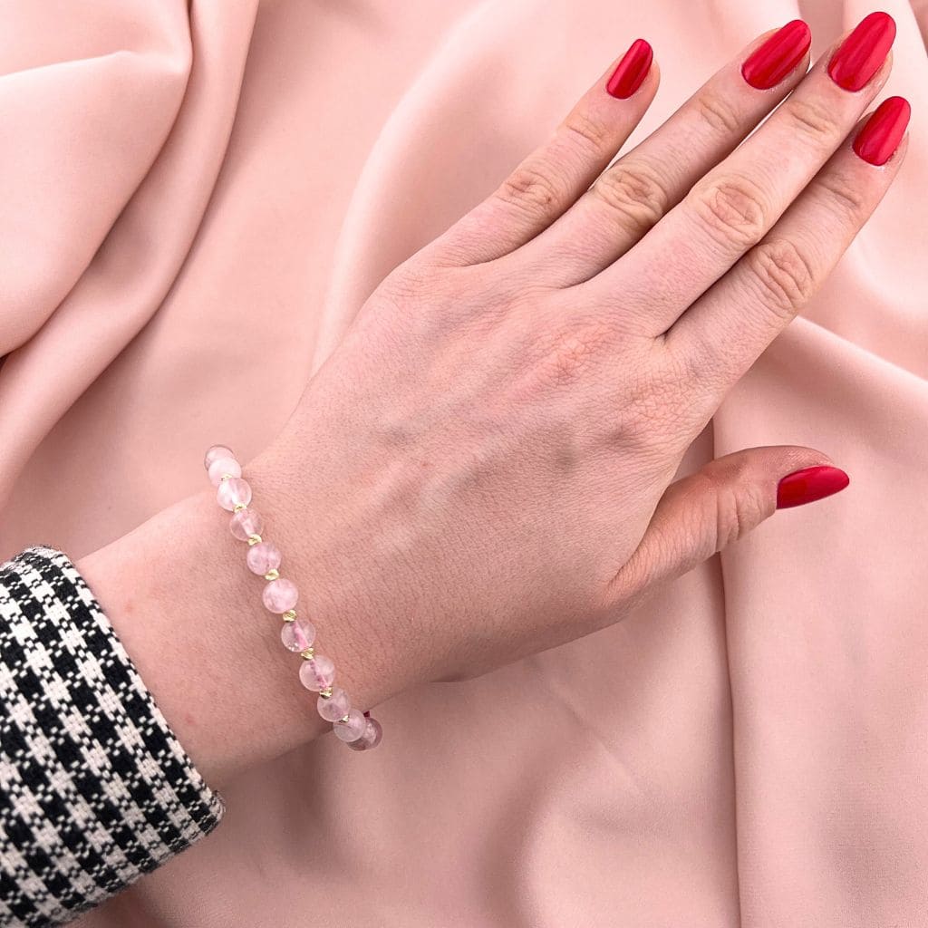 Bratara Snur cu Bile Aur 14k si Cuart Roz 5mm