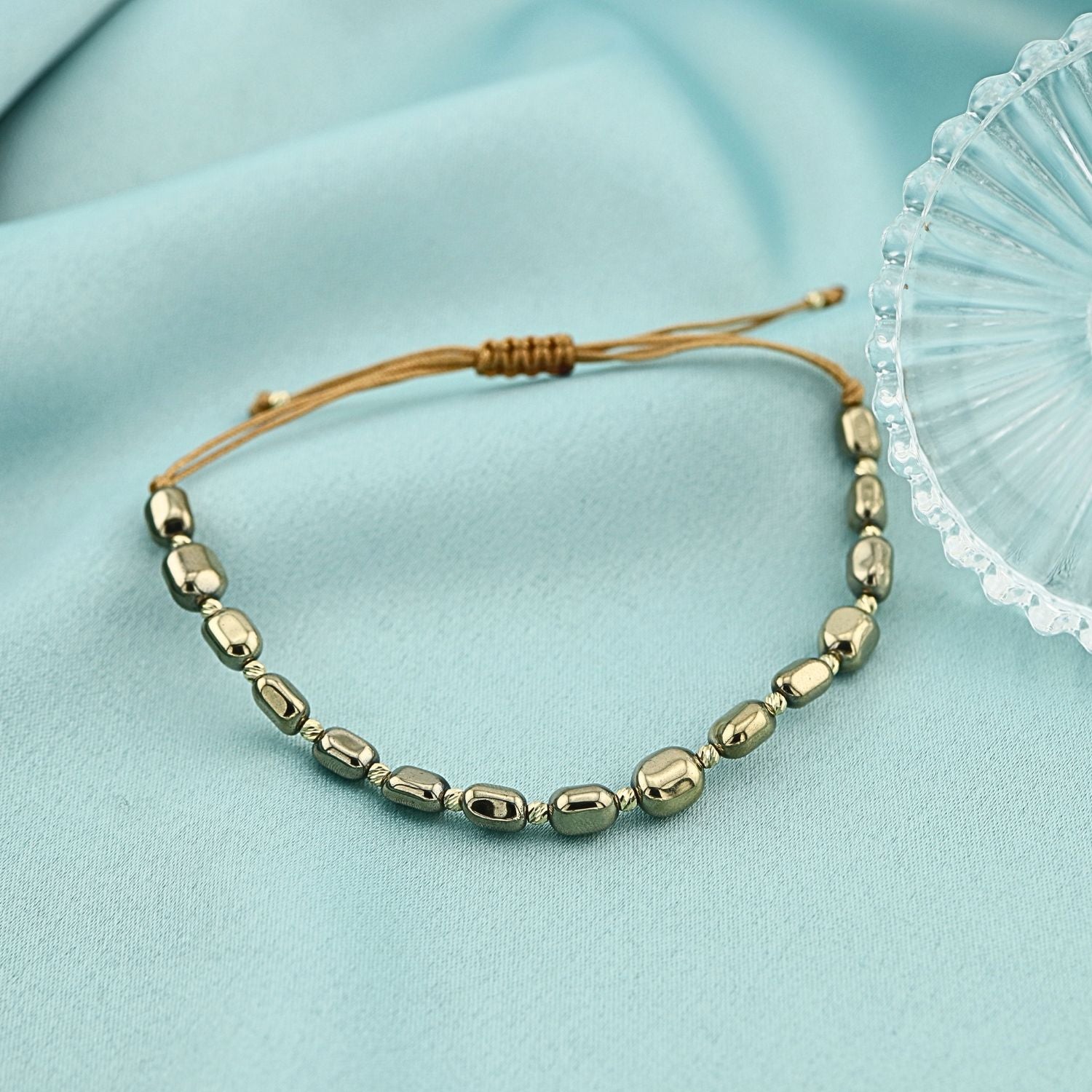 Bratara Snur cu Bile Aur 14k si Hematit Auriu 5mm