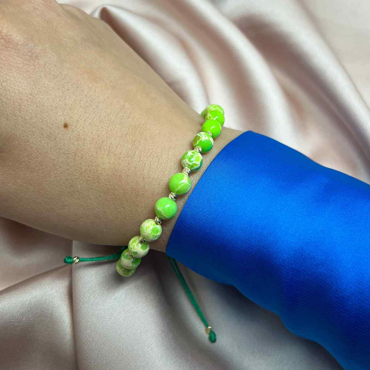 Bratara din snur cu bile din aur 14k si piatra naturala gaspeit de 6mm este alegerea perfecta pentru cei care cauta un accesoriu cu energie pozitiva si design elegant. Gaspeitul este cunoscut pentru proprietatile sale de echilibru emotional si revitalizare. Bilele din aur adauga un plus de rafinament si valoare. Bratara este reglabila, confortabila si potrivita atat pentru barbati, cat si pentru femei.