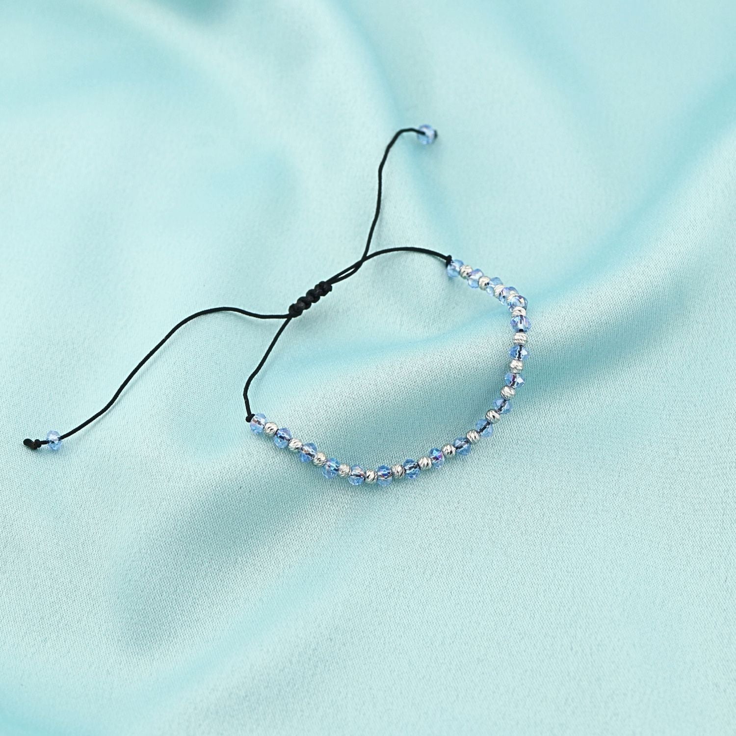 Aceasta bratara cu snur reglabil combina armonios bilele din argint 925 cu cristale albastre pentru un efect vizual subtil si rafinat. Usor de purtat si de asortat, este o bijuterie versatila, ideala atat pentru femei, cat si pentru barbati. Cristalele albastre aduc un plus de culoare si liniste interioara, transformand bratara intr-un accesoriu cu stil si semnificatie.