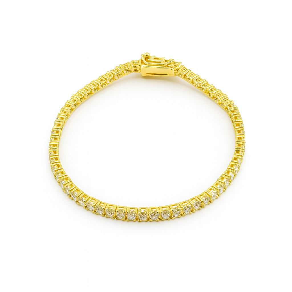Bratara Tennis Argint Placata cu Aur 18k de 3mm este un accesoriu elegant, ce combina stralucirea aurului cu calitatea argintului. Perfecta pentru a completa orice look, de la tinute casual la cele sofisticate. Un simbol al rafinamentului si al stilului.