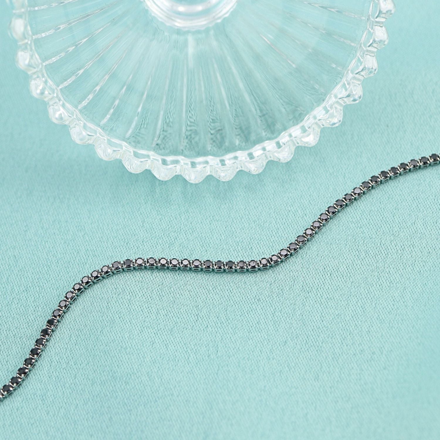 Bratara Tennis Aur Alb 14k Pietre Negre 1.5mm