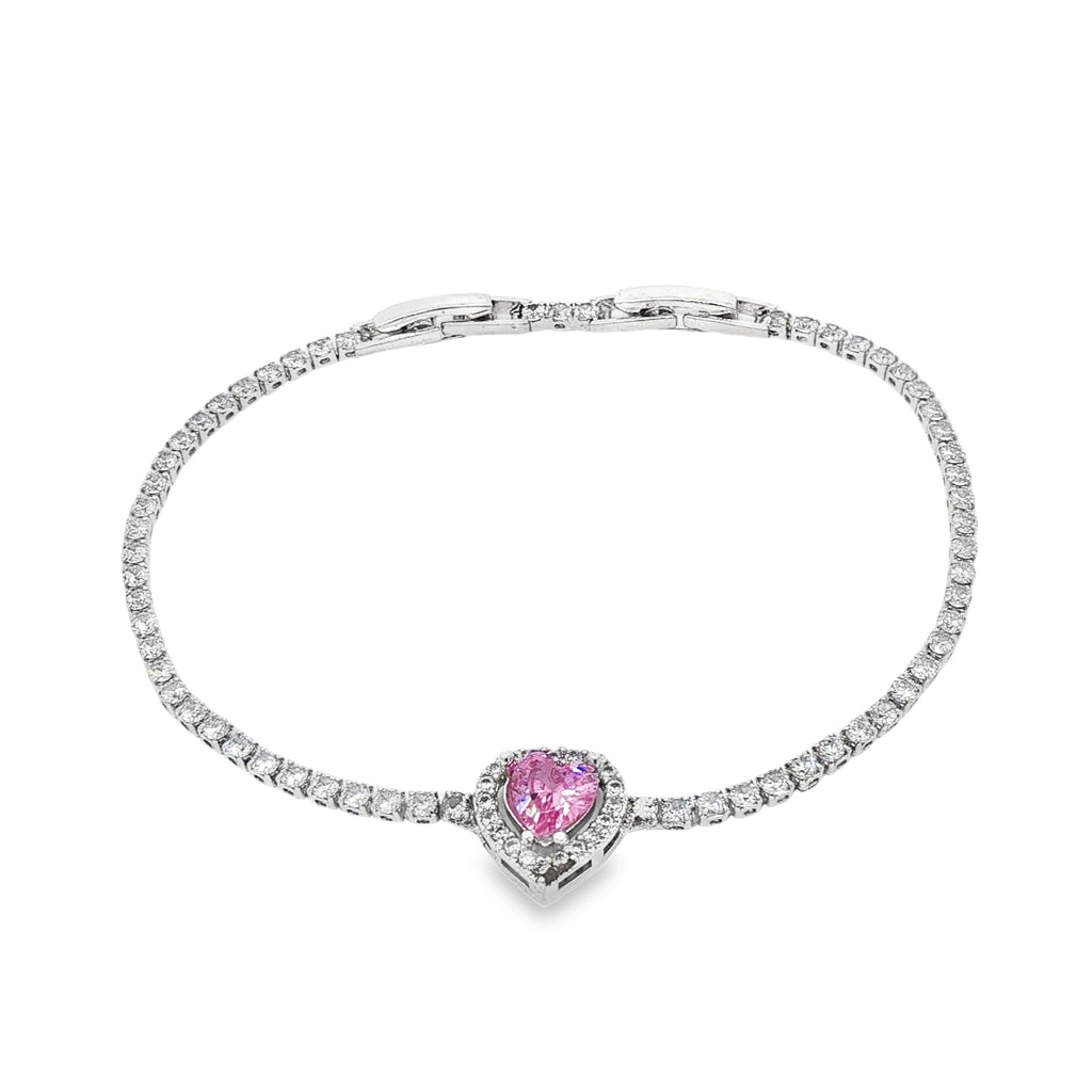Bratara Tennis 2mm cu Inima Roz si Pietre CZ