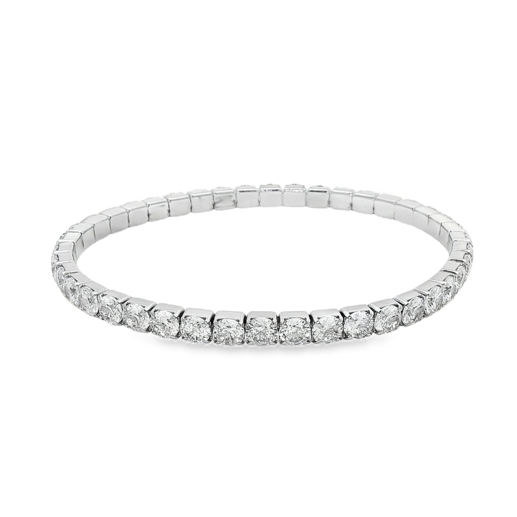 Brătară Tennis elastică cu pietre albe strălucitoare – elegantă, confortabilă si perfectă pentru un look sofisticat si feminin în orice ocazie.