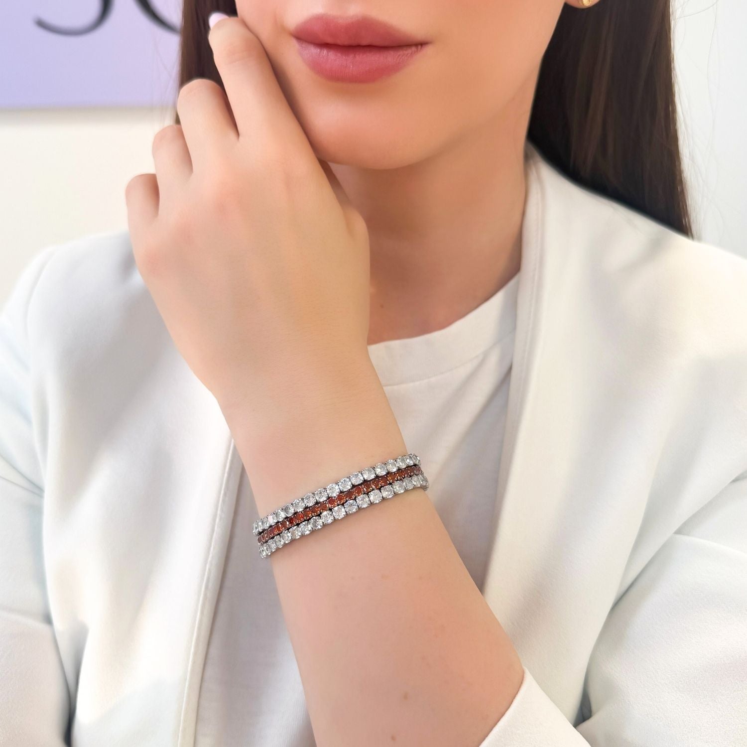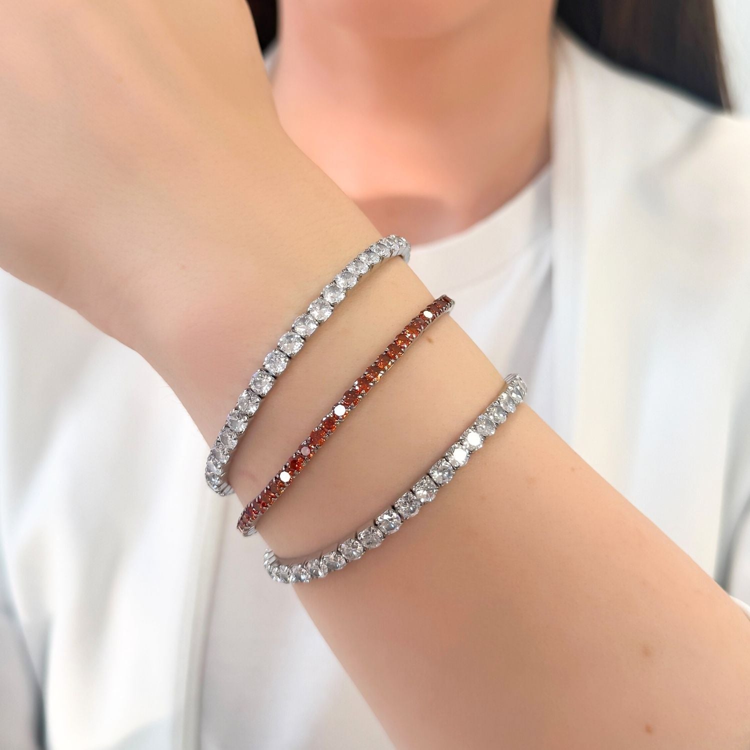Bratara Tennis elastica cu pietre portocalii – vibranta si elegantă, perfecta pentru a adauga culoare si stil oricarei tinute.