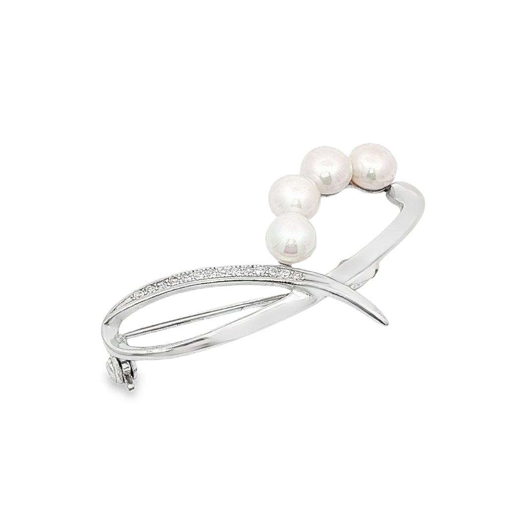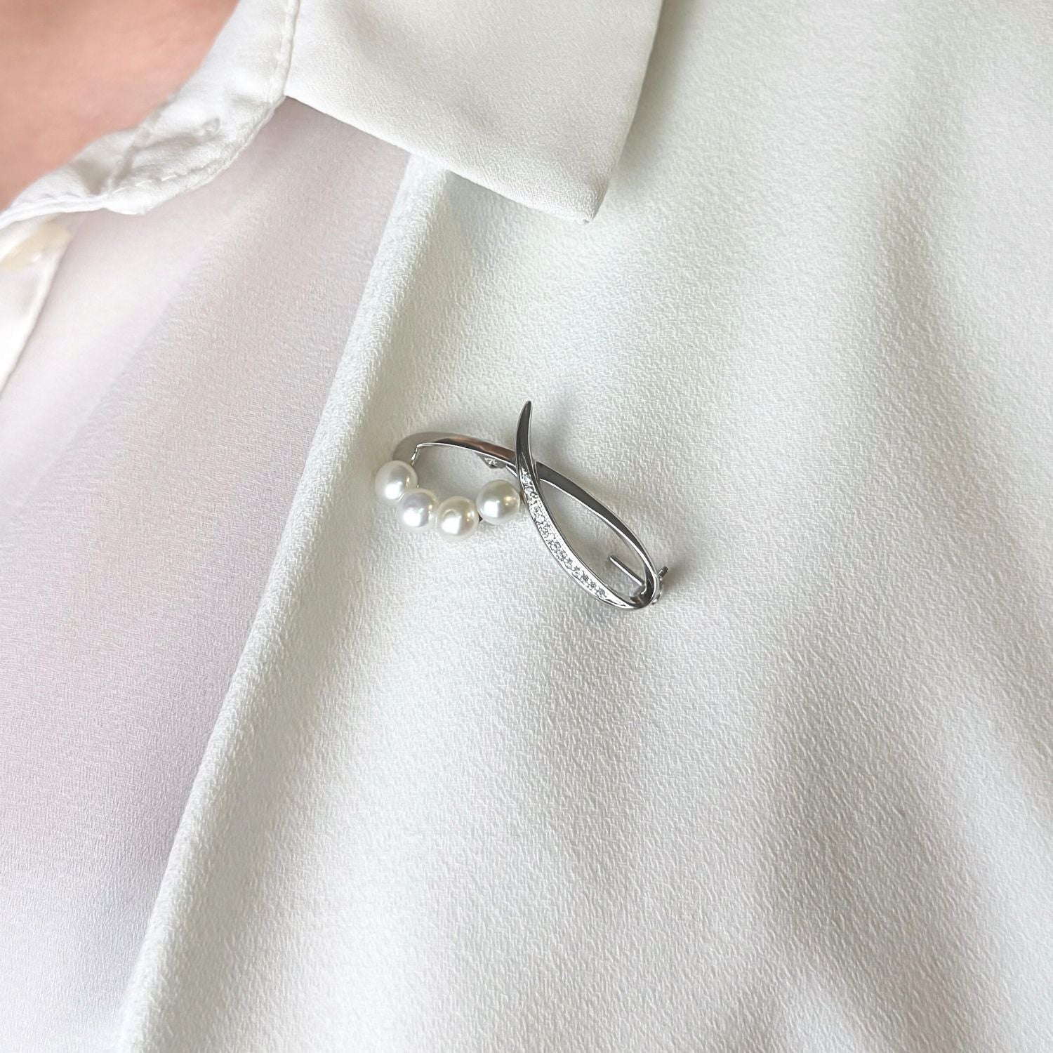 Brosa eleganta din argint cu perle, accesoriul perfect pentru tinute rafinate. Design delicat, ideal pentru evenimente sau cadouri speciale.