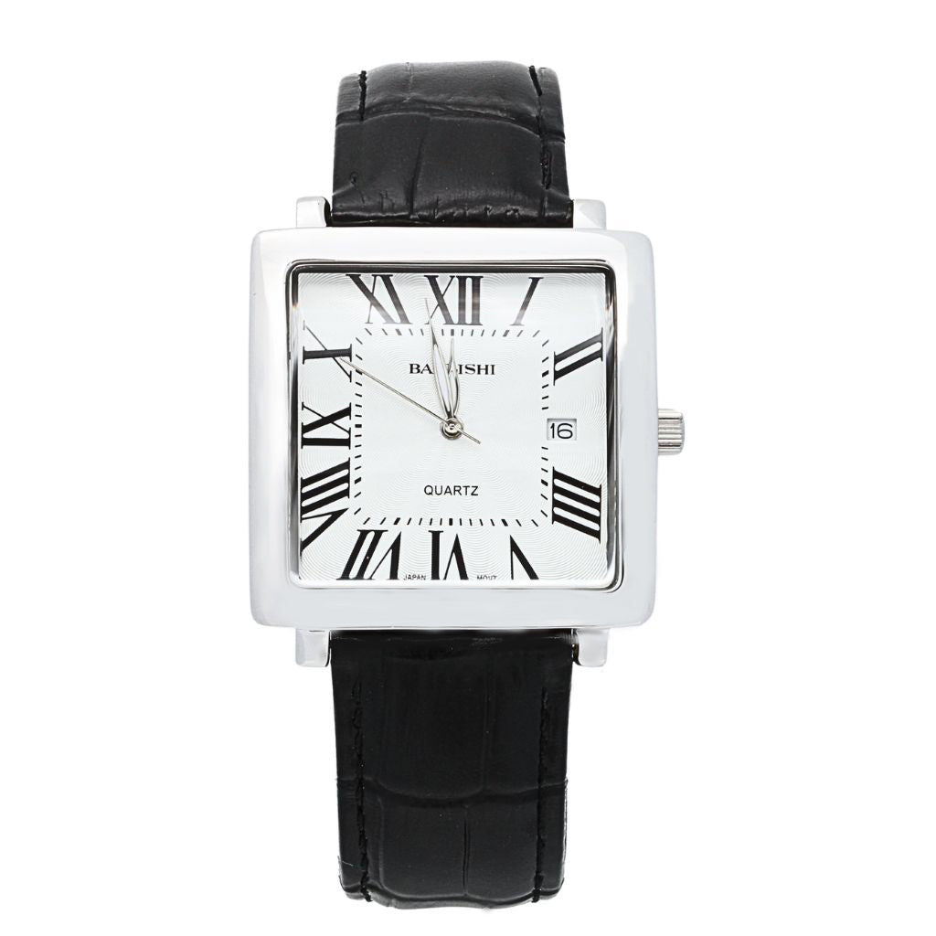 Ceas Bărbați din Argint cu Cadran Pătrat și Curea din Piele – Rafinament Masculin și Design Iconic
