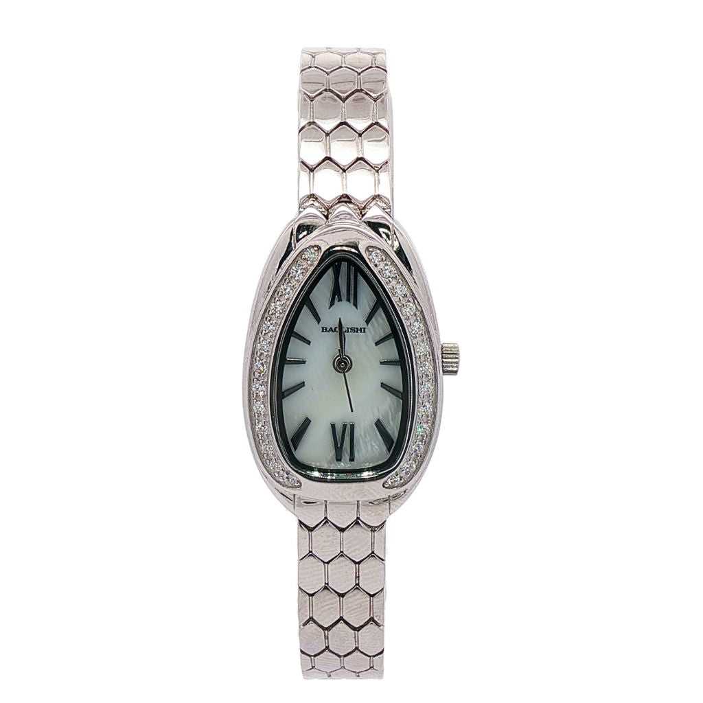 Ceas din argint cu cadran alb, elegant și rafinat, ideal pentru un look sofisticat și ocazii speciale.