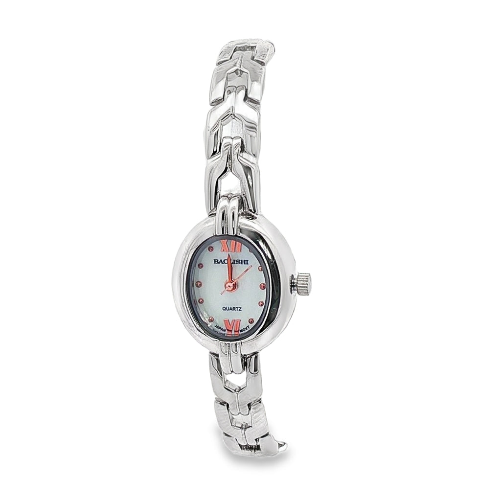 Ceas de dama din argint cu cadran oval, elegant și rafinat, potrivit pentru ținute casual sau ocazii speciale.