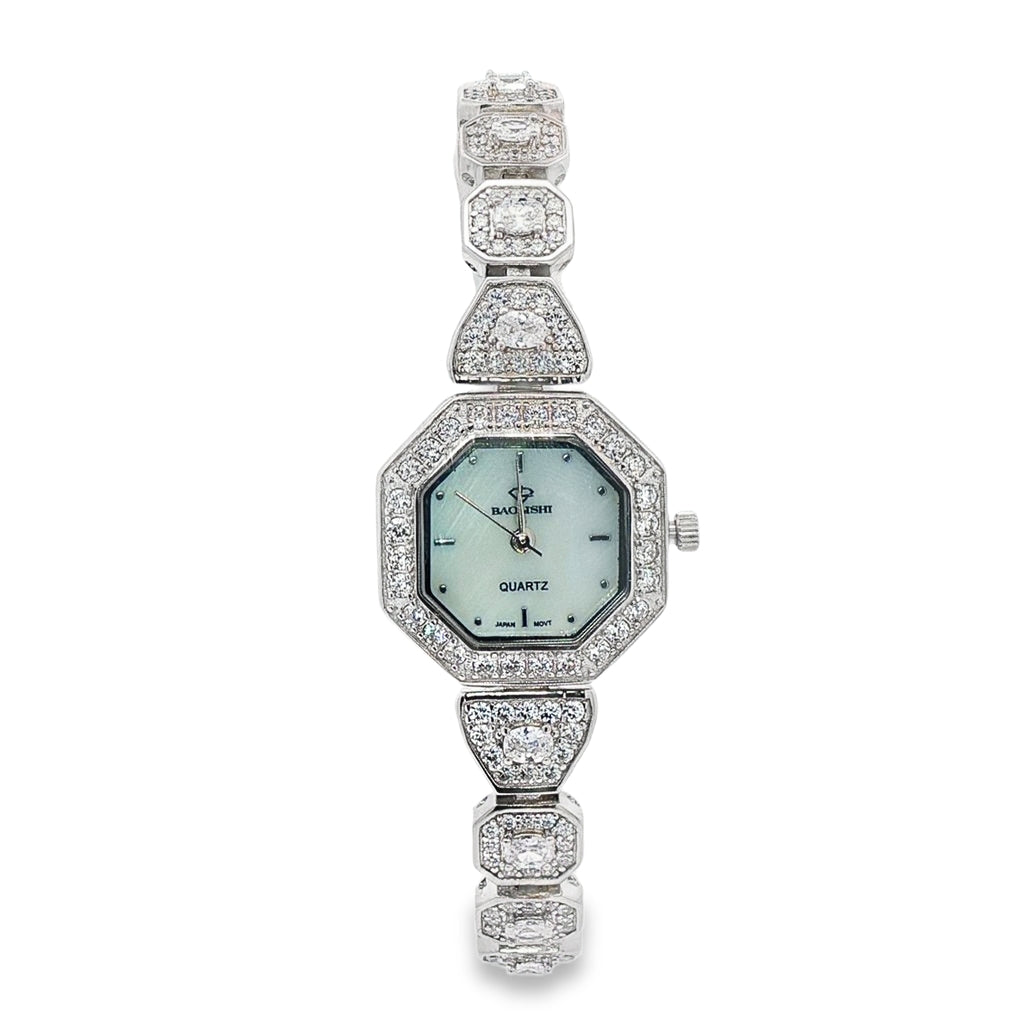 Ceas de dama din argint, cu model geometric modern, elegant și rafinat, ideal pentru orice ocazie sau ținută stilată.