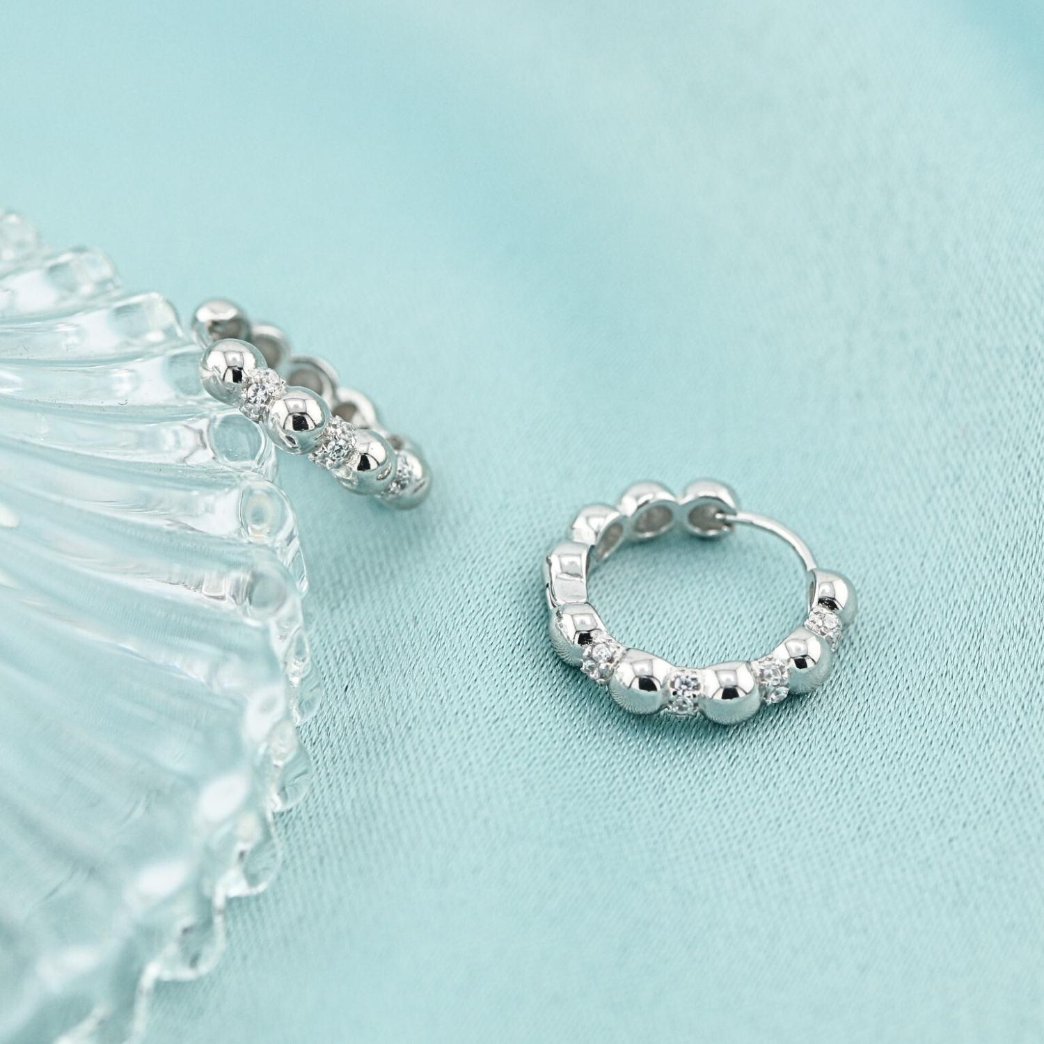 Cercei Argint cu Elemente Rotunde si Pietre Zirconia