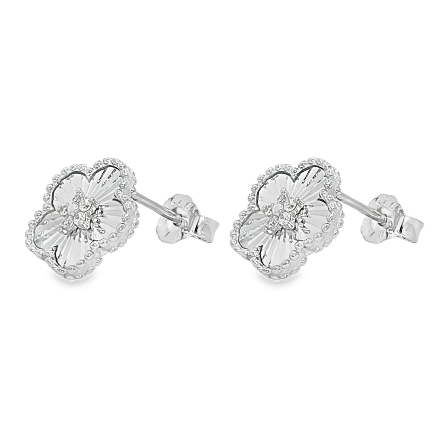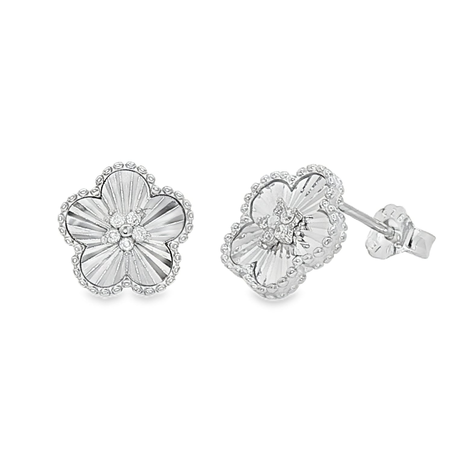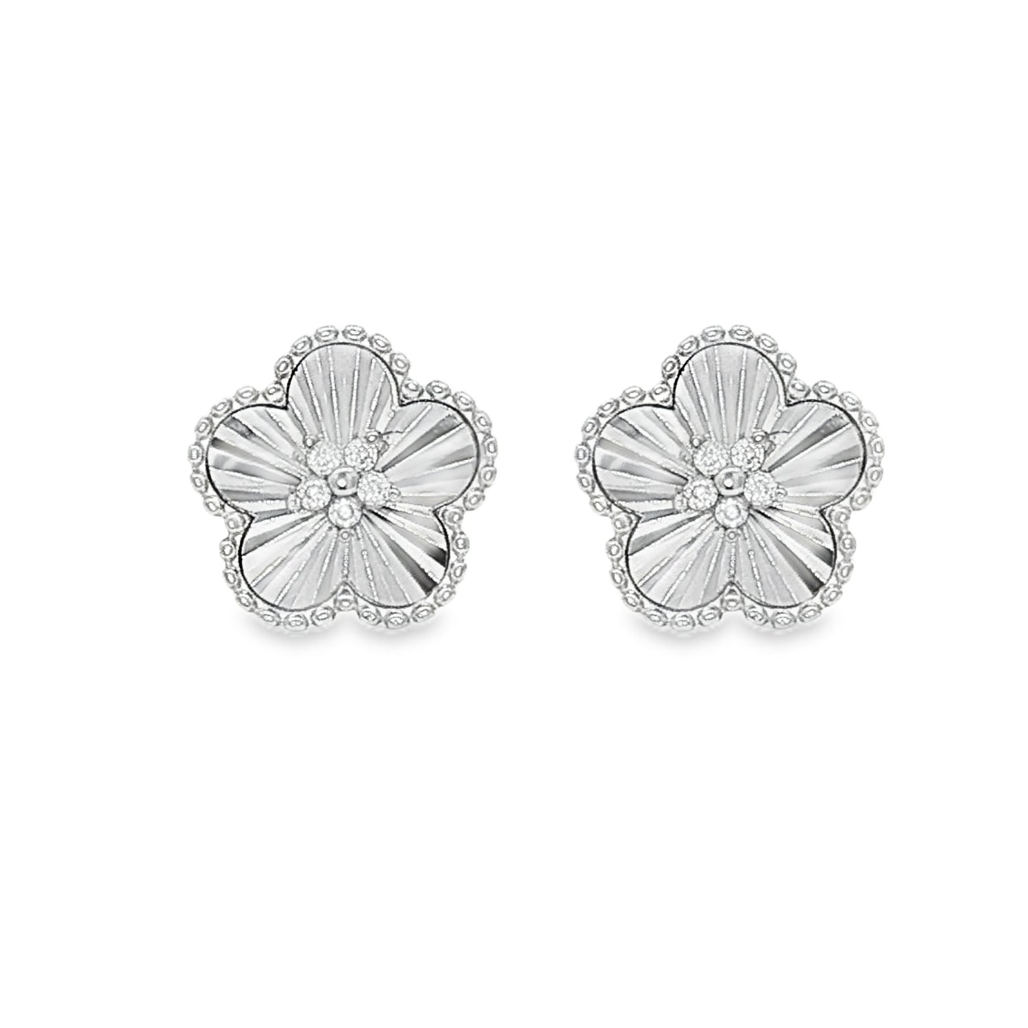 Cercei din argint 925 in forma de floare cu striatii si pietre zirconia, eleganti si rafinati. Realizati din materiale de calitate premium, ofera stralucire si durabilitate. Perfecti pentru tinute sofisticate sau ocazii speciale.