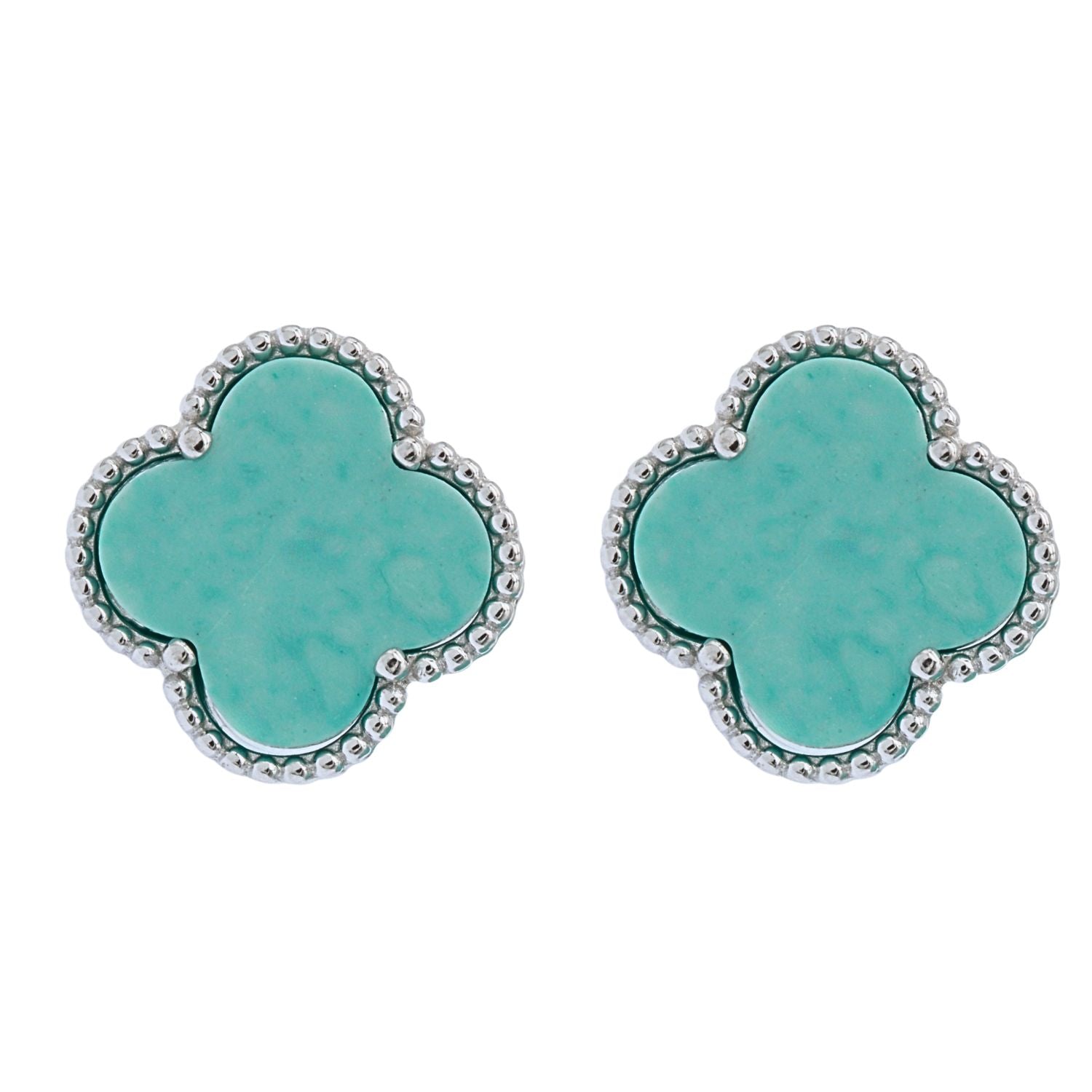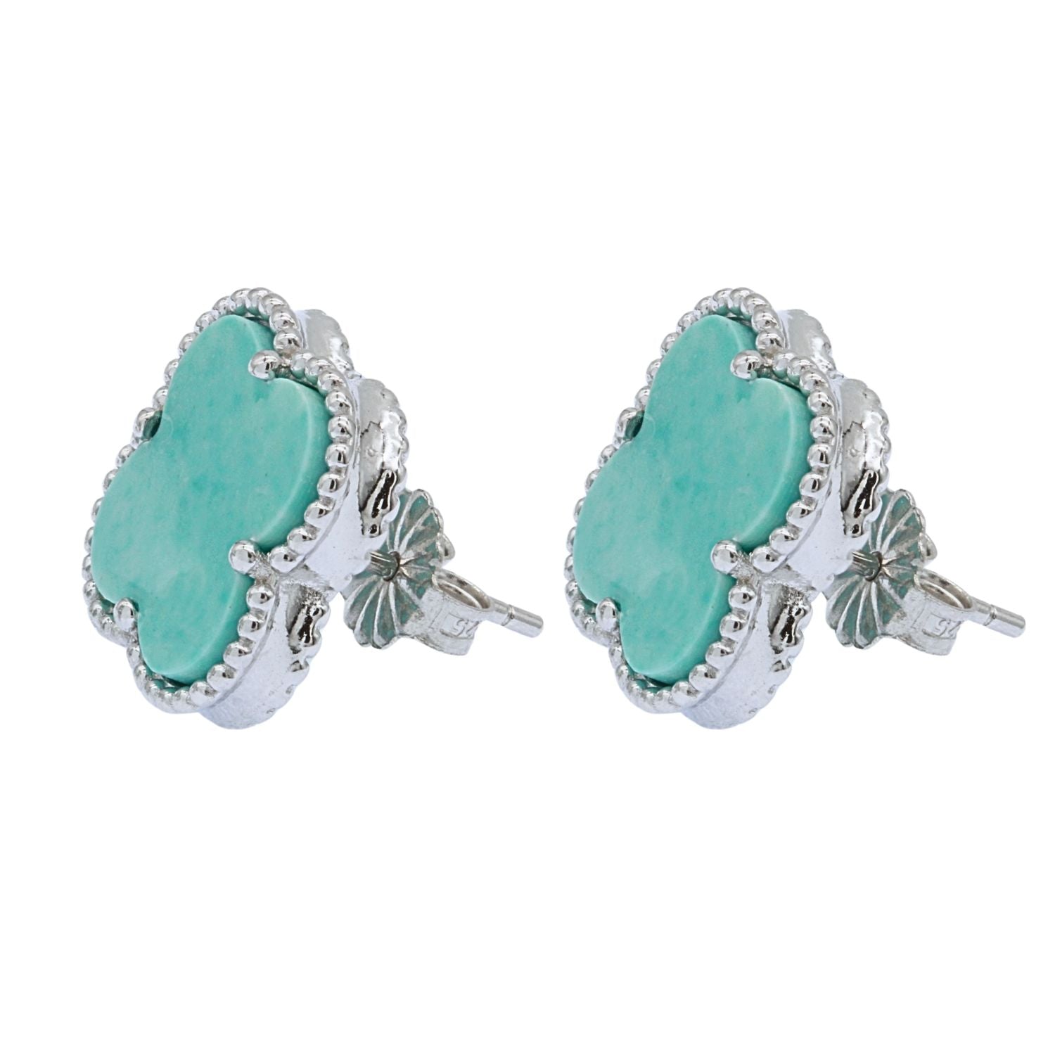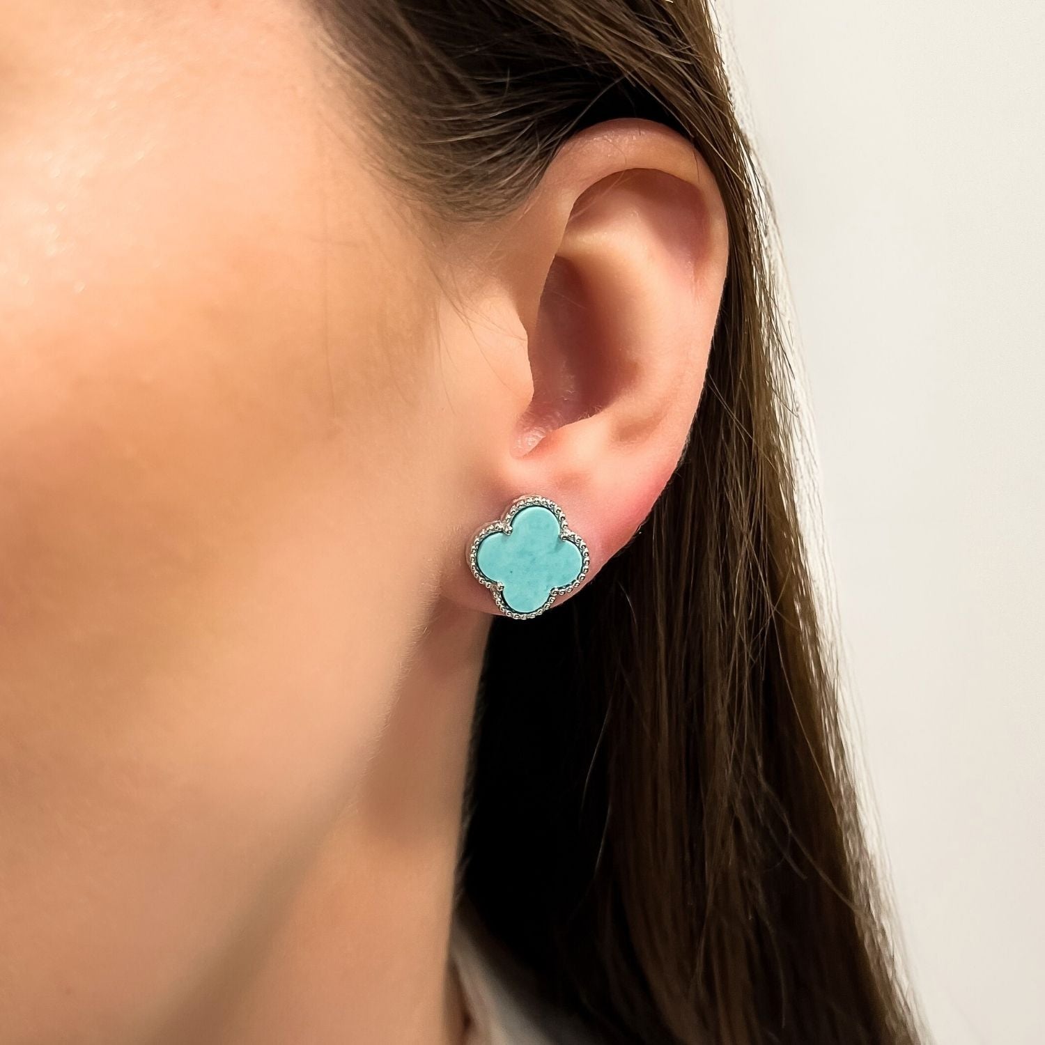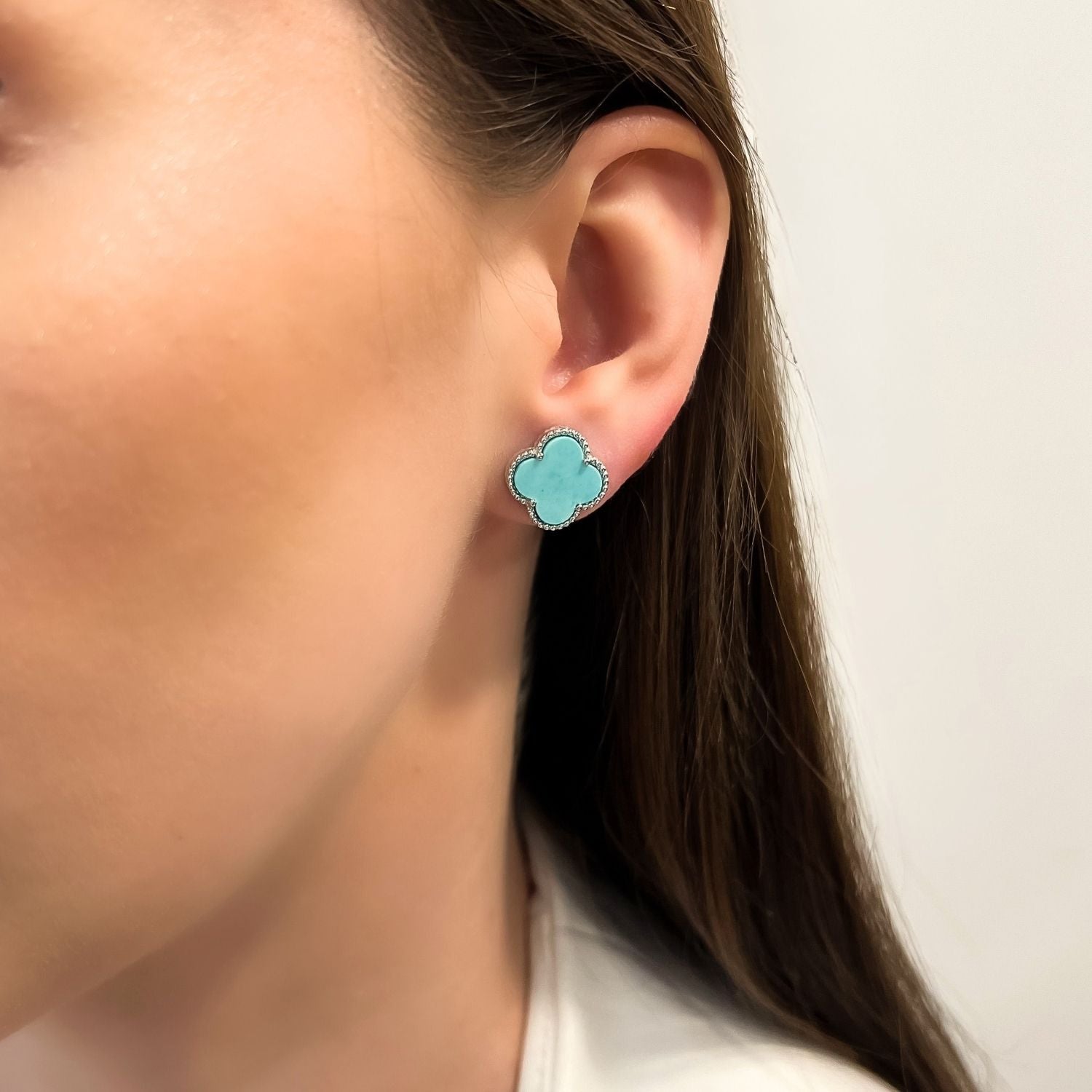 Cercei din argint 925 in forma de floare, decorati cu piatra naturala turcoaz. Un design feminin, delicat si plin de prospetime, ideal pentru orice sezon.
